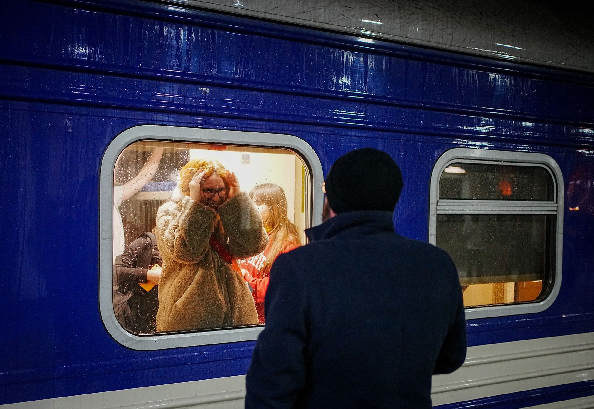 Kay Nietfeld / dpa / Scanpix / LETA Война продолжает разлучать украинские семьи: на фото — пара, которая прощается на киевском вокзале во время отправления поезда в польский приграничный город Пшемысль. Мужчинам покидать территорию Украины в период боевых действий разрешено только по особым обстоятельствам