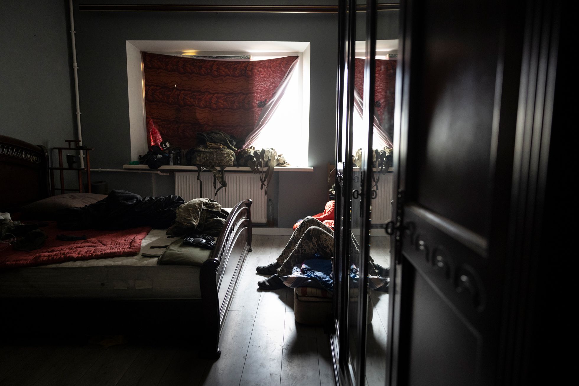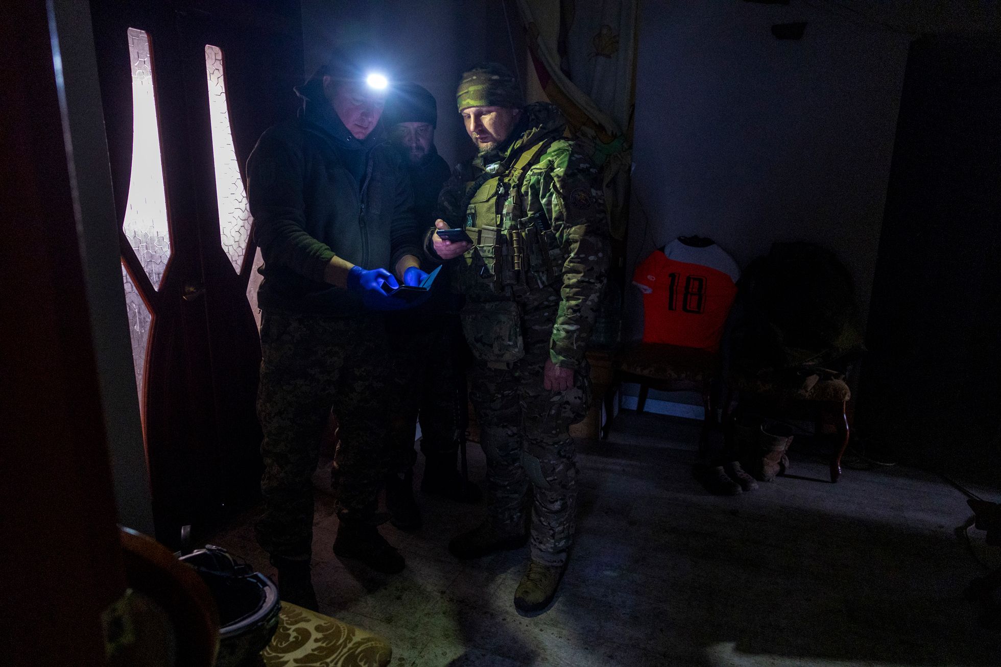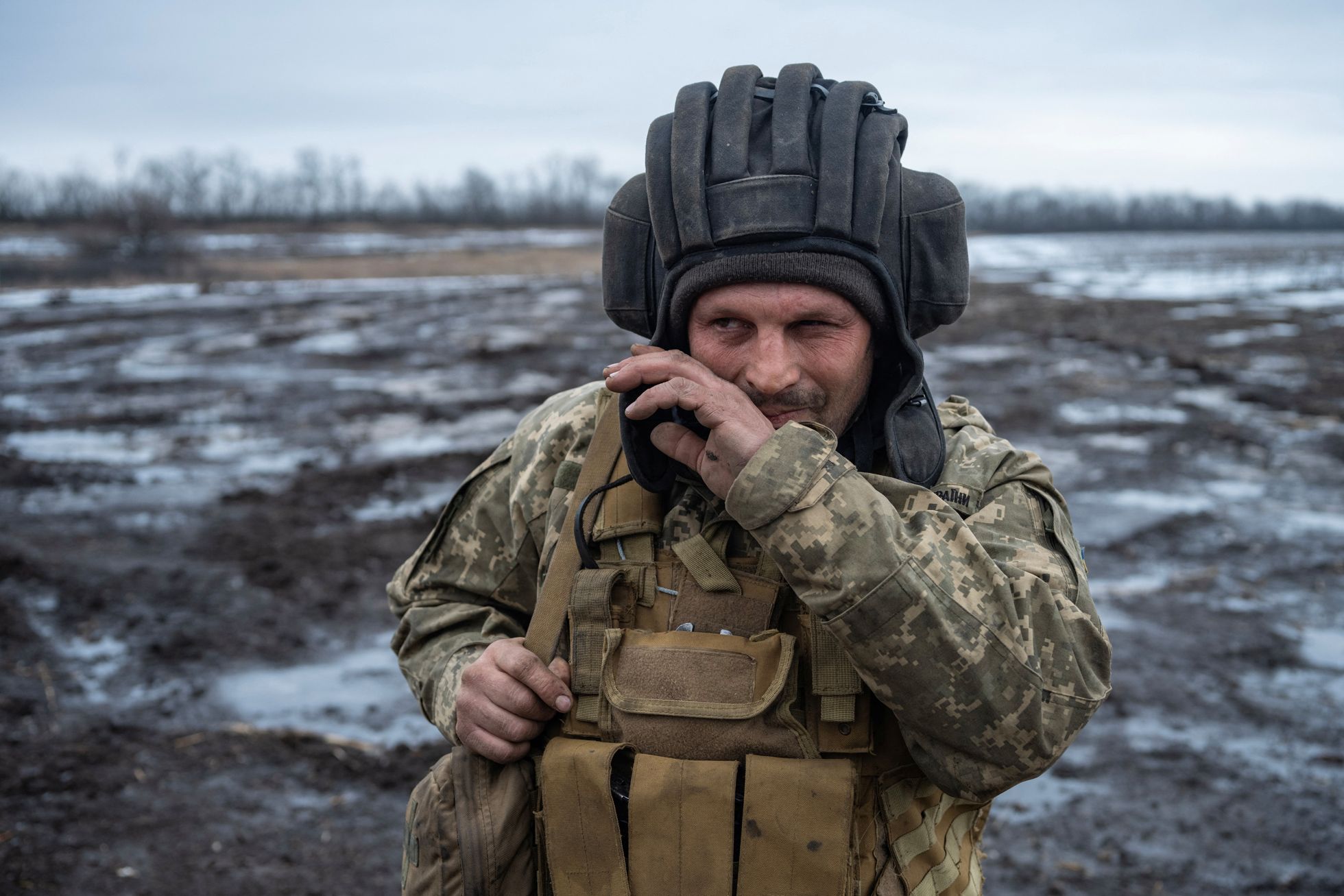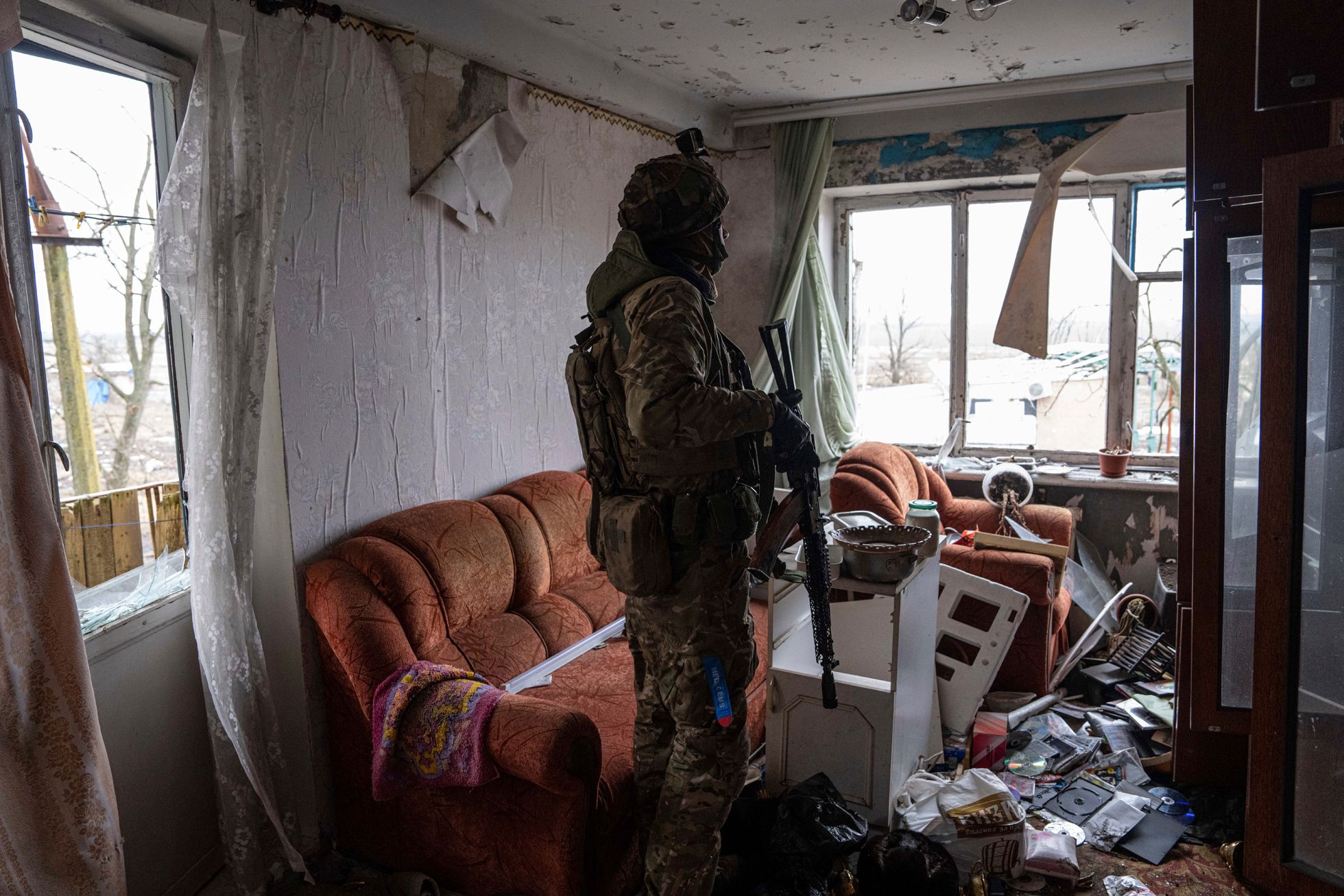 John Moore / Getty Images Пункт наблюдения в помещении базы Украинской добровольческой армии на донбасском фронте
