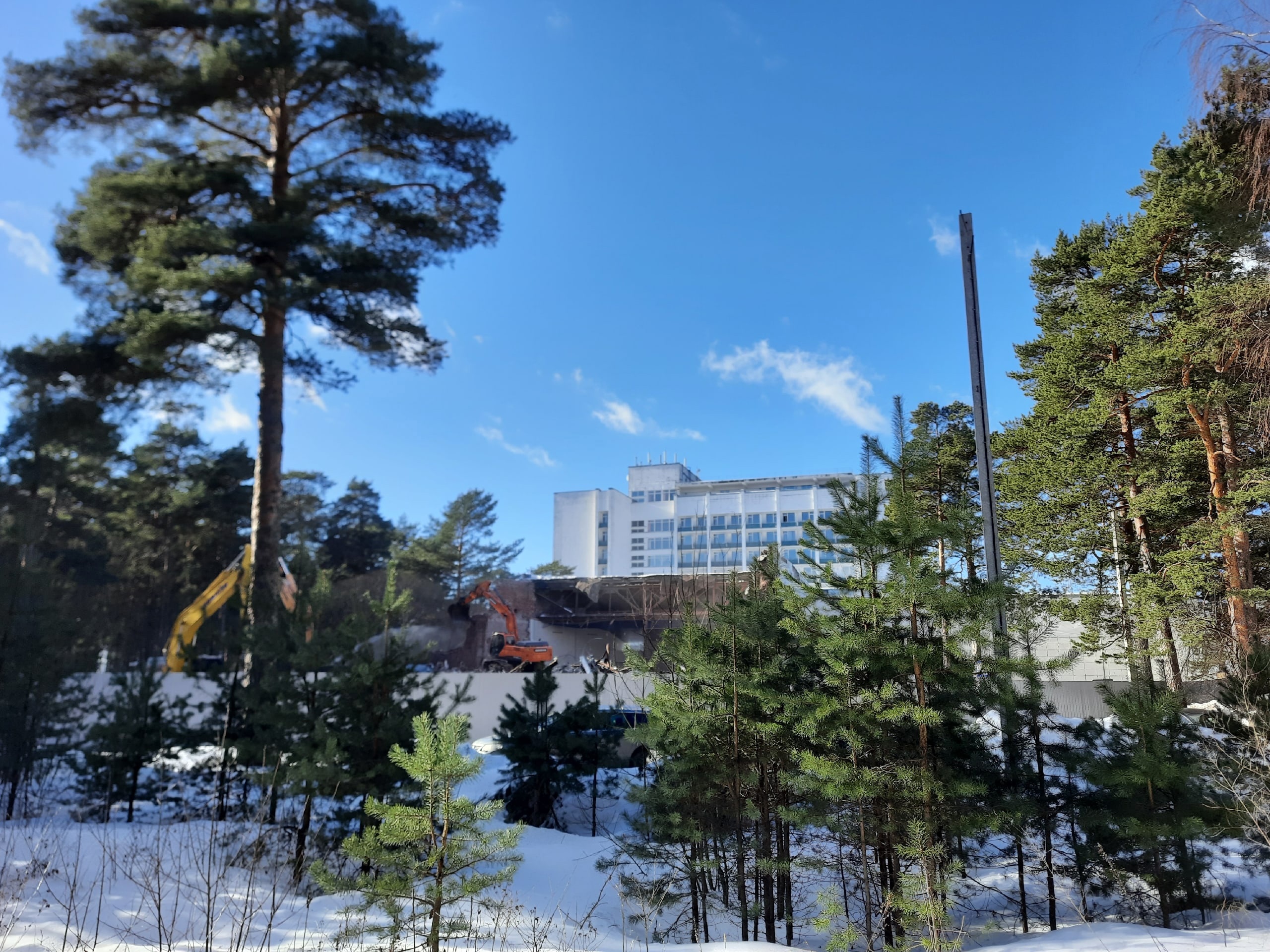 Во вторник, 28 февраля, санаторий «Сестрорецкий курорт» начали сносить. Об этом сообщили градозащитники, которые увидели технику рядом с санаторием. Затем «Деловому Петербургу» это подтвердила компания «ЛСР», занимающаяся демонтажом здания.