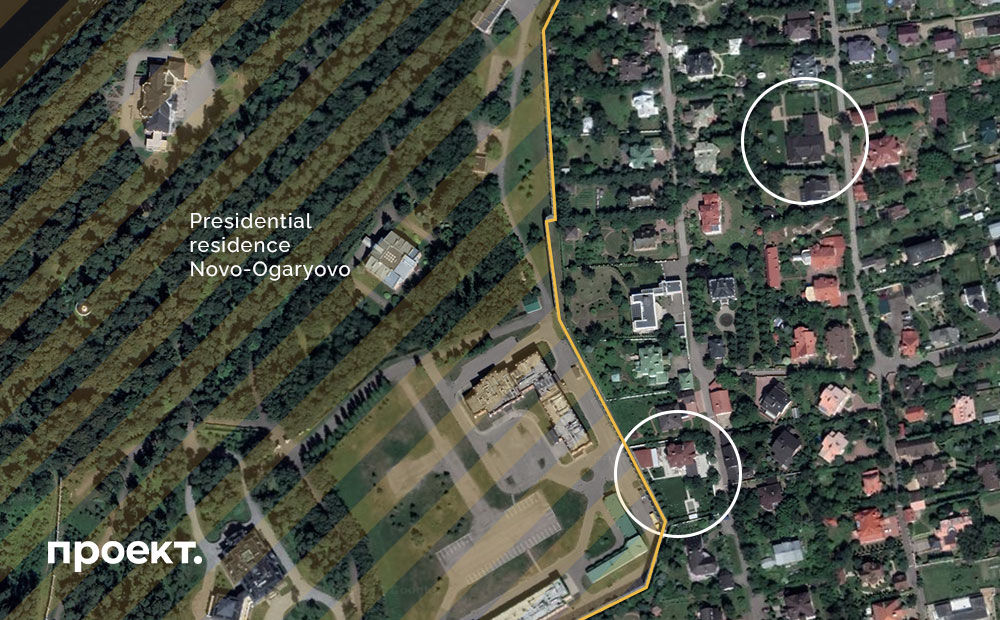 . Both houses are on adjacent streets, and one of them, the 800+ sq.m. one with a bathhouse and swimming pool, is right next to the fence of the presidential residence.