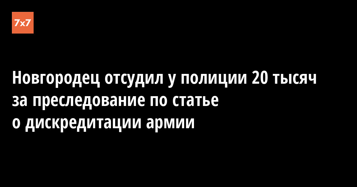 Новгородец отсудил у полиции 20 тысяч за преследование по статье о дискредитации армии