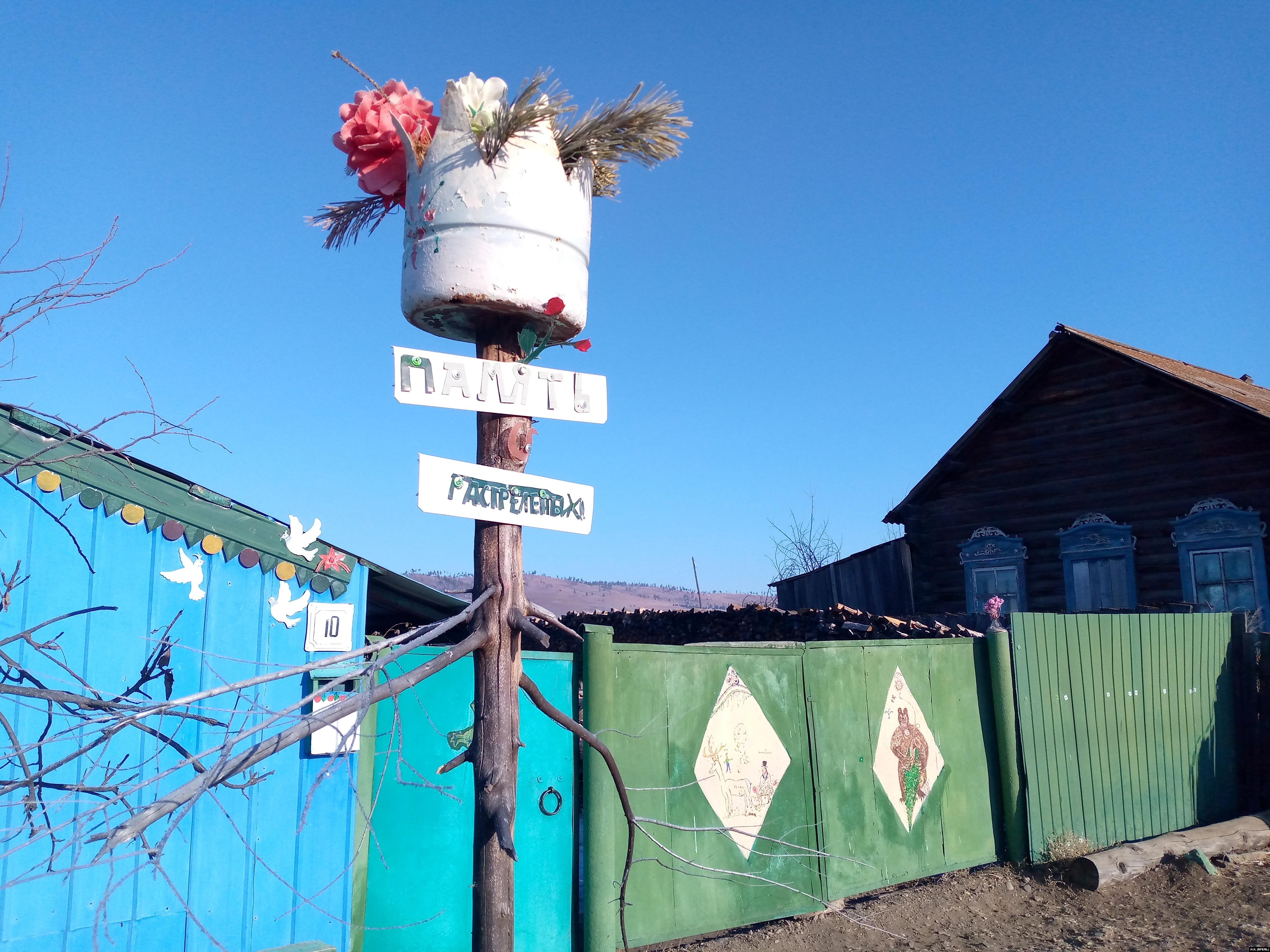 Кладбище, на котором похоронен Александр Непомнящих, находится в конце улицы Оленгуйской. У одного из домов на этой улице нельзя не заметить сухое дерево с надписью "памяти растреленых" (орфография сохранена).