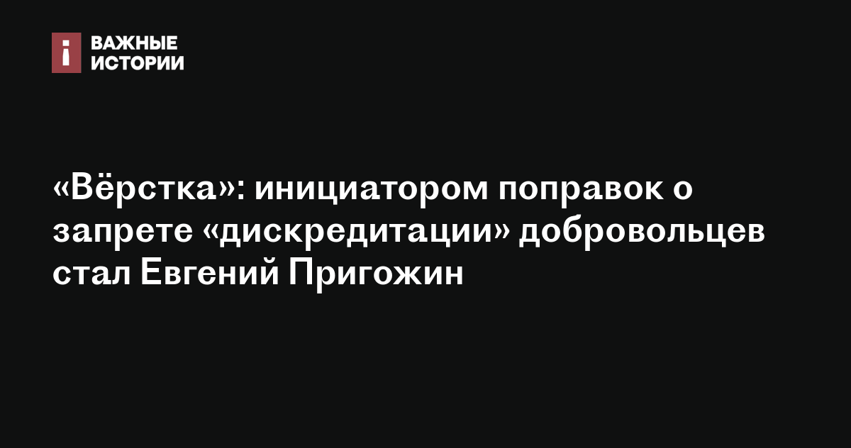 Инициатором поправок об уголовном наказании за дискредитацию военных, добровольческих формирований, организаций и лиц, которые содействуют в выполнении возложенных на Вооруженные силы России задач, стал глава ЧВК Вагнера Евгений Пригожин. Он заручился поддержкой администрации президента в конце января, рассказал «Вёрстке» близкий к нижней палате парламента источник.