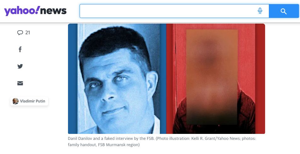 - Корреспондент Yahoo News посетил Данилова в тюрьме в Эстонии, мужчина подтвердил, что на видео с «признанием» действительно он и, как пишет издание, «намекнул», что ФСБ вынудила его солгать о работе на КаПо. На вопрос о том, знает ли он, что российские спецслужбы обвинили его в шпионаже, он сказал, что не хочет говорить на эту тему. При этом заключенный сказал, что никогда не работал на КаПо. Данилов не стал говорить, за что его задержали
