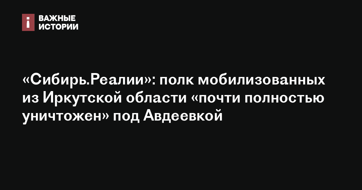 Полк мобилизованных из Иркутской области, отправленных на штурм Авдеевского укрепрайона под Донецком почти полностью уничтожен, сообщает «Сибирь.Реалии» со ссылкой на родственниц солдат.