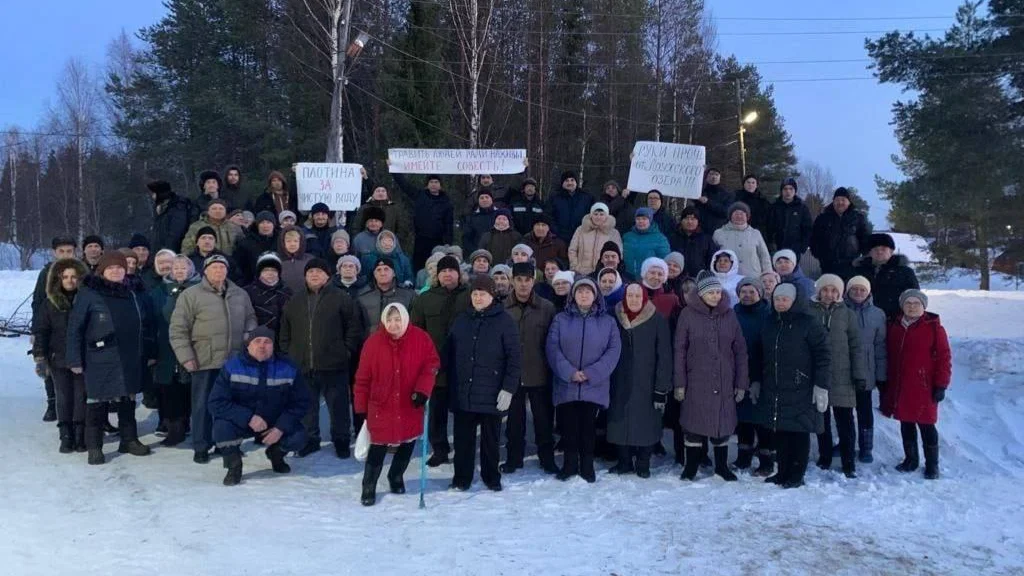 Свои требования жители поселка Плотина подкрепили групповым фото у озера, которое они защищают. Несколько десятков человек встали перед объективом с плакатами «Плотина за чистую воду», «Травить людей ради наживы. Имейте совесть!» и «Руки прочь от Лоухского озера!».