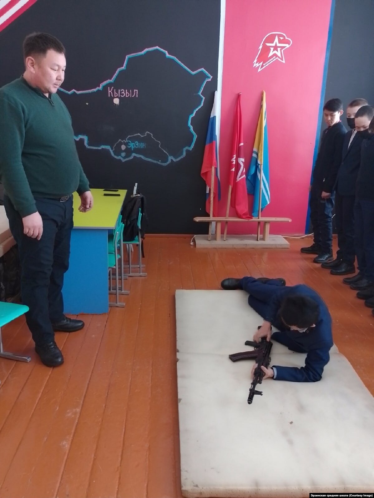 Большинство мероприятий "военно-патриотической" направленности в Туве проходит с участием активистов "Юнармии" – движения, созданного в 2016 году по инициативе Минобороны. В Забайкалье – другом неблагополучном регионе страны – шесть бывших юнармейцев уже погибли в Украине, а двое – пропали без вести. Сейчас юнармейцы также активно принимают участие в акциях "Движения первых" – организации, которую в 2022 году придумали в Кремле, чтобы воспитывать молодежь "на основе традиционных российских духовных и нравственных целей". "Движение первых" продвигает "Разговоры о важном" и традицию, когда по утрам в российских школах поднимают флаг.