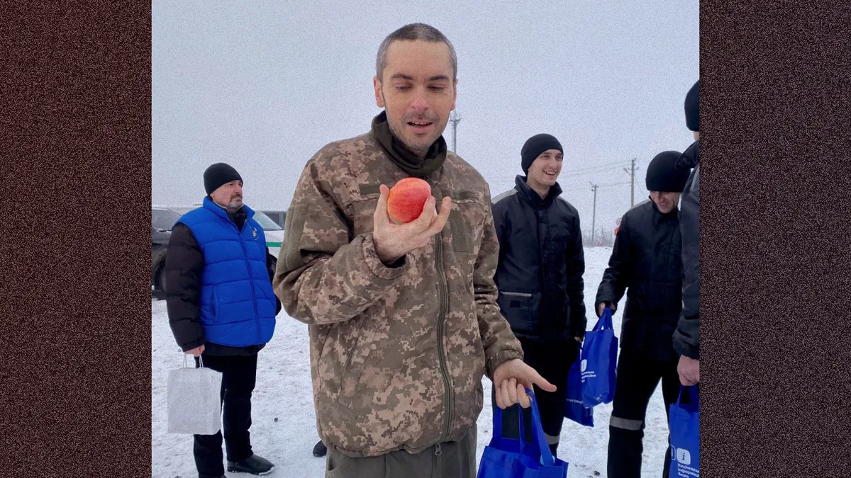 Когда освобожденных привезли в Украину, им дали пакеты с продуктами. Мой сын увидел, что другие вытащили из пакетов яблоки и едят. А сын их очень любит. Фотограф оказался в нужном месте в нужное время. Это знаменитое фото с яблоком многое говорит о характере Максима. Он очень любит жизнь.