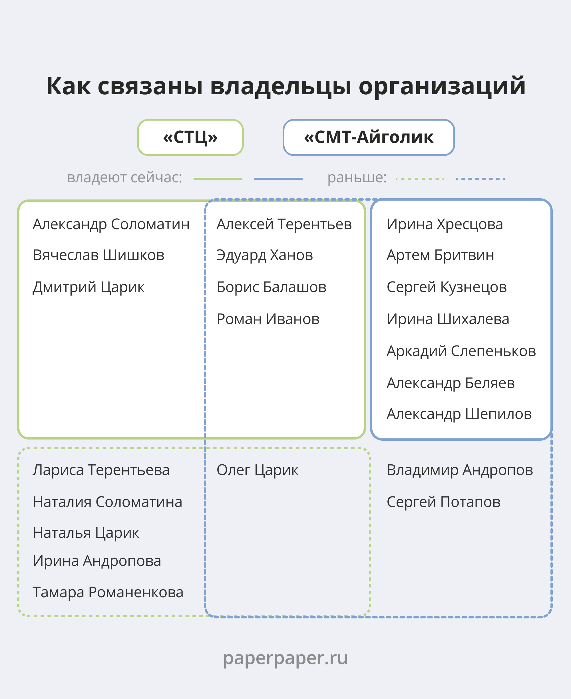 - разработчик электроники «СМТ-Айлогик», которым владеют Ирина Хресцова, Артем Бритвин, Сергей Кузнецов, Ирина Шихалева, Аркадий Слепеньков, Александр Беляев и Александр Шепилов;