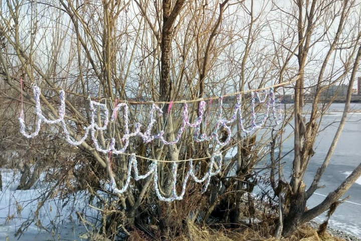 Она начала делать «Нежный мир» в один из первых дней «спецоперации»: «Первая работа была очень простой. У меня был кусок сиреневой органзы, который я давно купила, потому что мне понравилась ткань — такая волшебная, эльфийская. Почувствовала, что именно на этом куске ткани должна написать слова, которые больше всего хочу, чтобы остались в моем мире. Взяла краску и написала. Пошла в лес. Воткнула лыжные палки и натянула транспарант. К следующему воскресенью придумала более сложную технику. Использовала старую одежду и всякие ленточки нежных цветов, из которых сплела шнур и сделала из него буквы. Эта работа была кропотливее, и отняла больше, чем неделю. Потом поняла, что надо вязать. Вязание третьего „Нежного мира“ заняло у меня всю весну. Проект помог пережить первые месяцы, помог справляться с тревожностью, которая была просто запредельной. Рукоделие концентрирует сознание на простых механических движениях. Это меня спасало не раз, и в ситуации мировой катастрофы тоже очень помогло, поэтому к серии „Нежный мир“ у меня очень трепетное отношение».