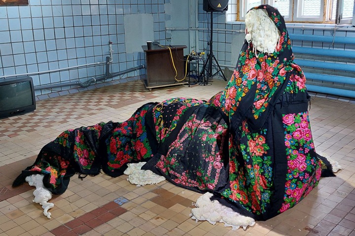 Платки винтажные, пена монтажная. И силикон. Из этого красноярская художница Женя Иль сделала инсталляцию «Красотулечка», представленную в 2022 году на выставке «Человеческий фактор» в Барнауле.