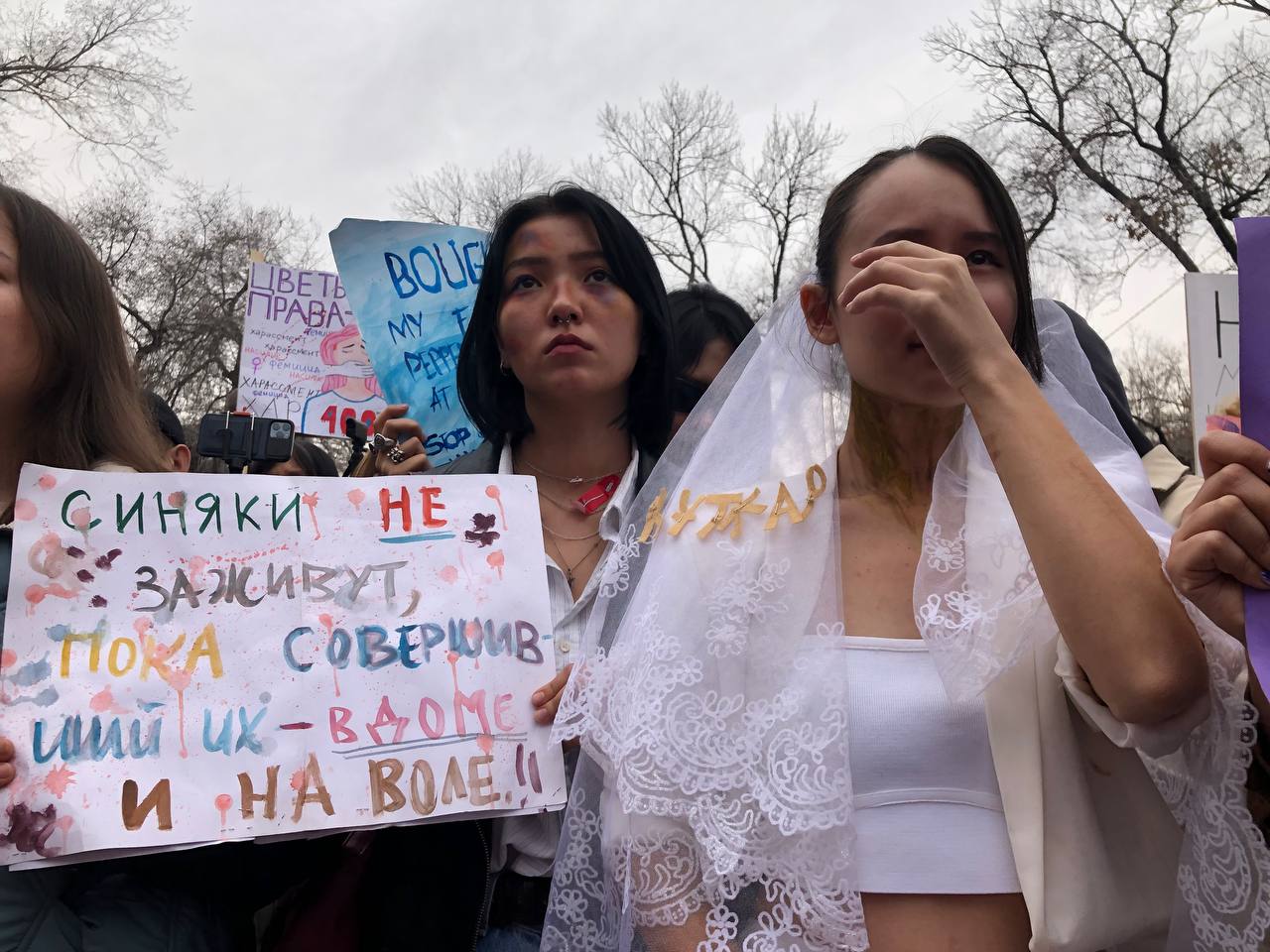 Акимат (мэрия) Алматы согласовала женский митинг только после многочисленных протестов активисток, которые выходили на митинги и пикеты. Как и прошлом году, власти не разрешили проведение шествия по единственному отведенному для маршей короткому маршруту по улице Шевченко от парка Ганди к скверу Шокана Уалиханова.