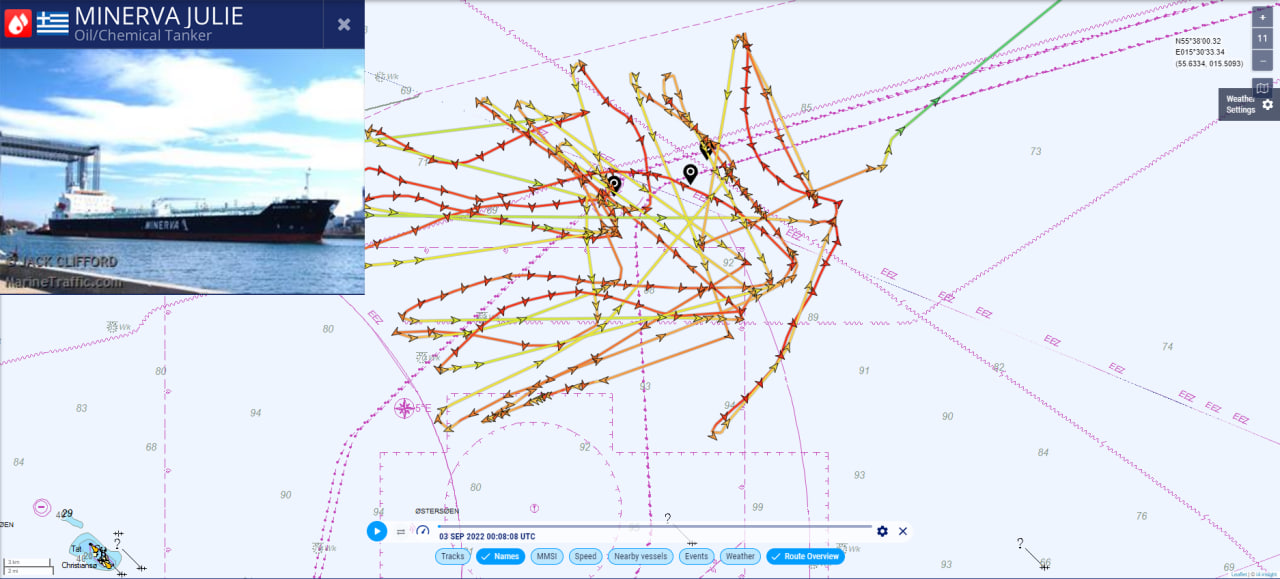 В период с 5 по 13 сентября танкер под греческим флагом Minerva Julie кружил вокруг места, где впоследствии был взорван газопровод «Северный поток-1», пишет OSINT-аналитик Оливер Александер. В то же время в районе трубопроводов должна была находиться яхта «Андромеда», которая, по данным Der Spiegel, могла использоваться для закладки взрывчатки на трубопроводе.
