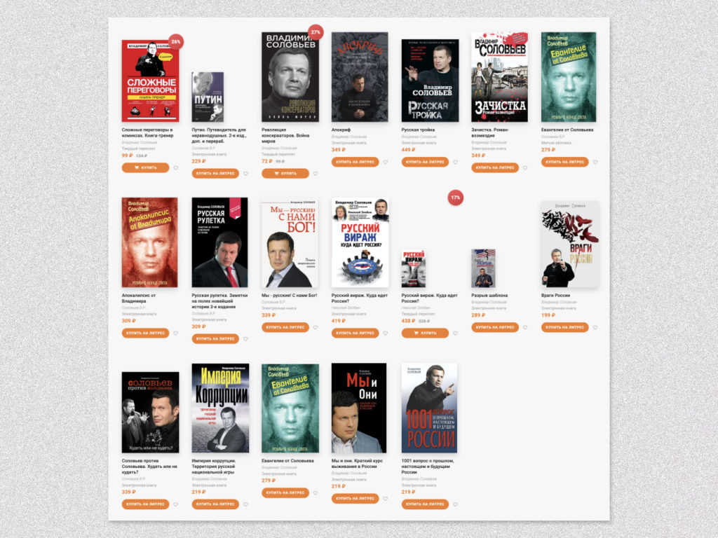 Так выглядит весь ассортимент книг Соловьева на сайте крупнейшего российского издательства «Эксмо»