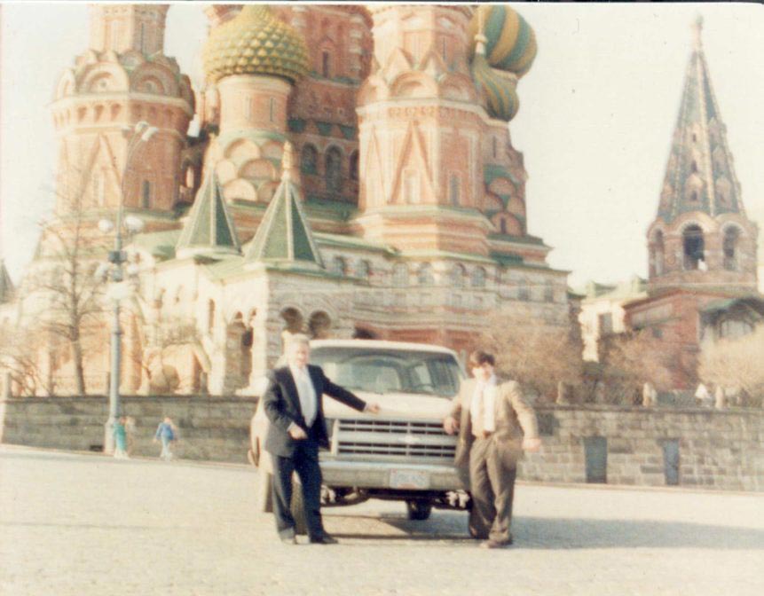 Владимир Соловьев в фирменной марке своей эйчар-компании Meteor на Красной площади, начало 1990-х. Фото: сайт Колина Хэммонда