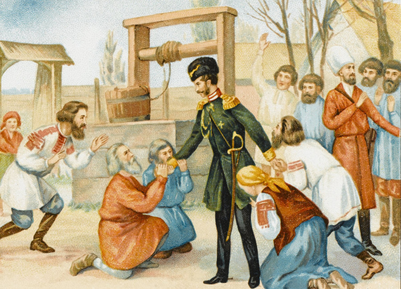 Александр II отменяет крепостное право. Французская иллюстрация 1860-х гг.