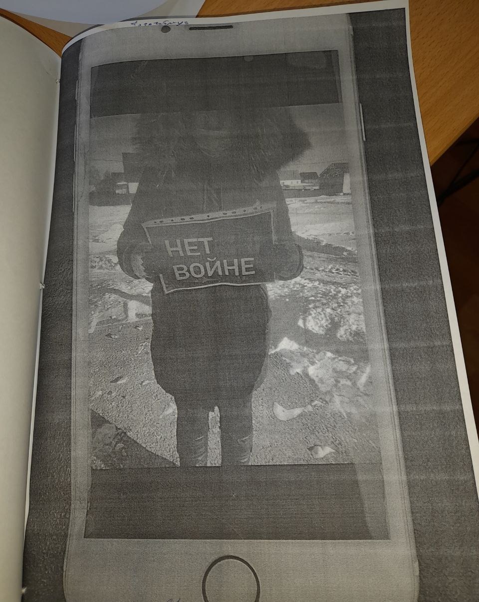 Пояснение главы села, из административного дела Дарьи: На протяжении марта 2022 года ко мне поступала информация от жителей села о том, что к остановочному комплексу на автодороге Тюмень – Курган выходит женщина с плакатом. При этом пояснили, что данная женщина является жительницей села и проживает в непосредственной близости от указанного остановочного комплекса. После мне вновь поступила информация о том, что указанная женщина вновь находится на остановочном комплексе с плакатом "Нет войне!" и демонстрирует это проезжающему автотранспорту. При этом представили фотоизображение. Указав, что не желают, чтобы лицо, которое сделал фотографию, как-то фигурировало в деле. Я сохранила фотоизображение. В последующем передала информацию участковому.