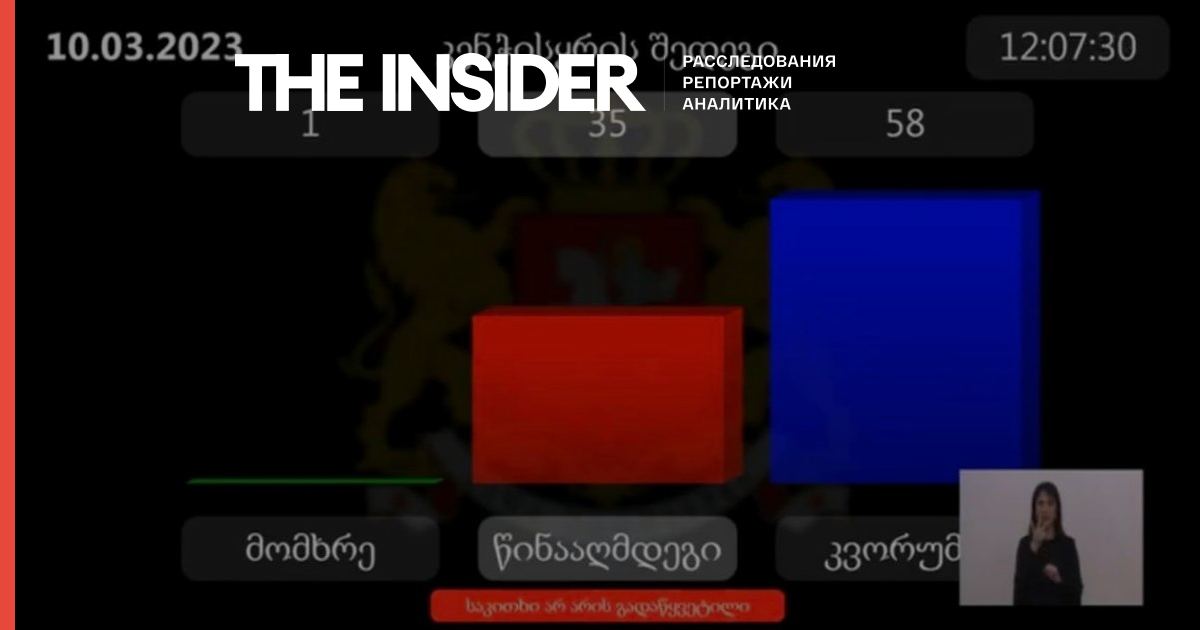 Парламент Грузии прекратил рассмотрение законопроекта об «иностранных агентах». Один депутат проголосовал за его рассмотрение, 35 выступили против.