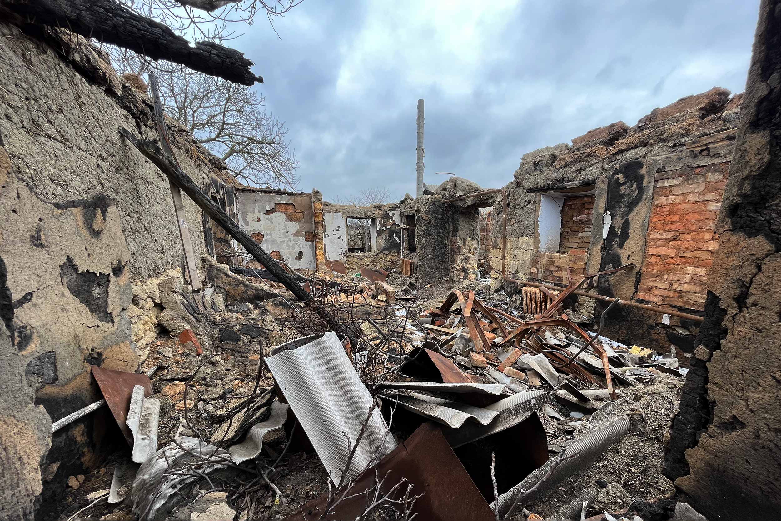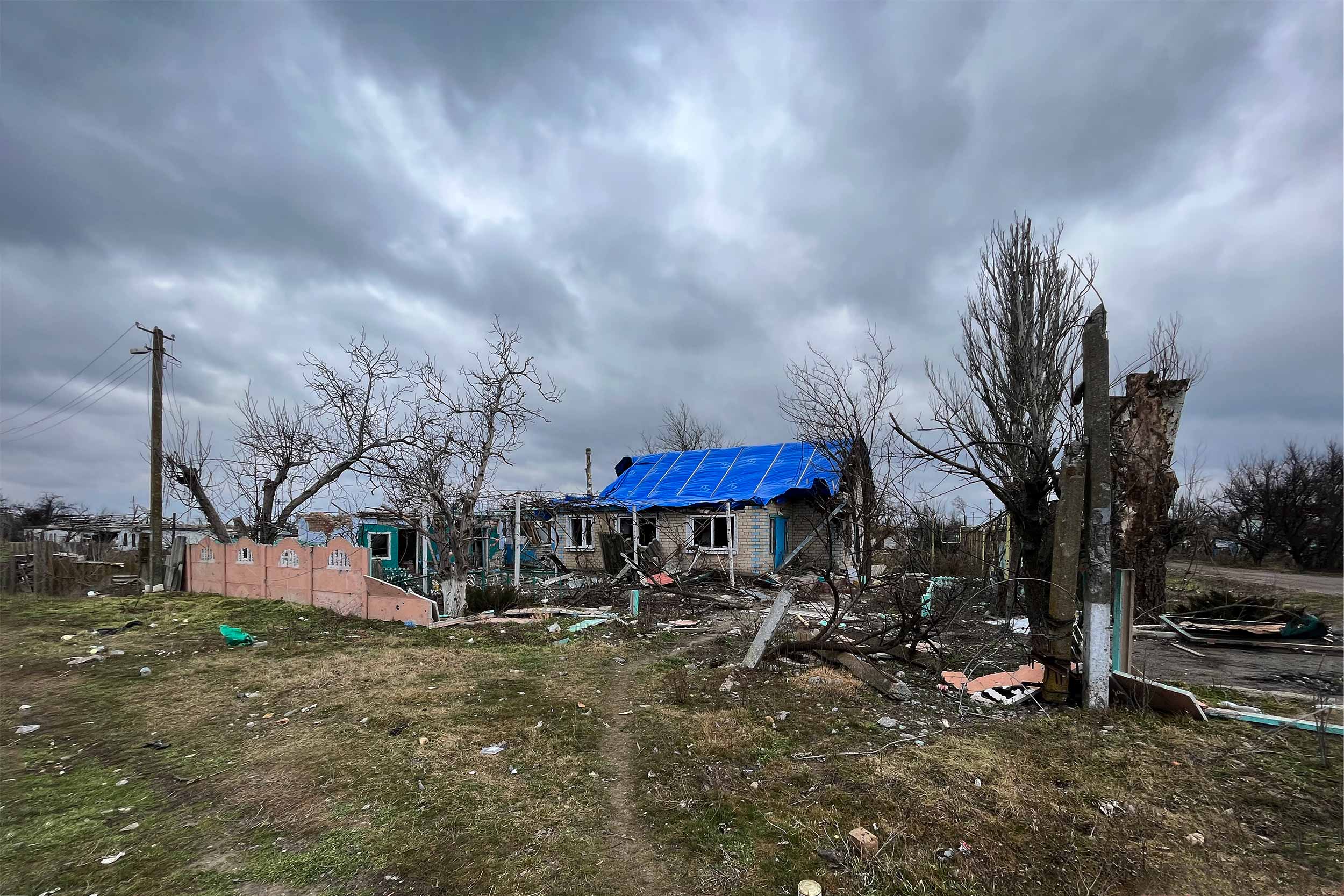 Через три месяца после краха русских в Херсоне, города и села в этом районе иллюстрируют первый год войны. Жителей пугают масштабы проблемы. Ситуация в этом разрушенном поселке на границе области, на полпути между Херсоном и Николаевом, очень показательная.