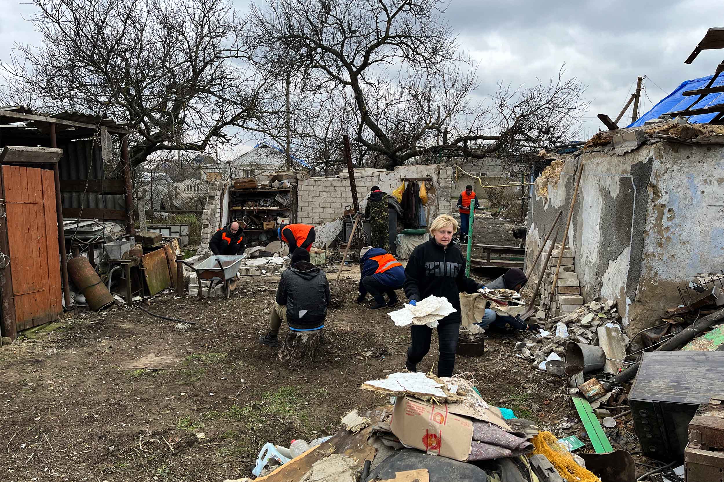 Татьяна Чигрин и волонтеры "Добробата" разбирают завалы, фото IWPR