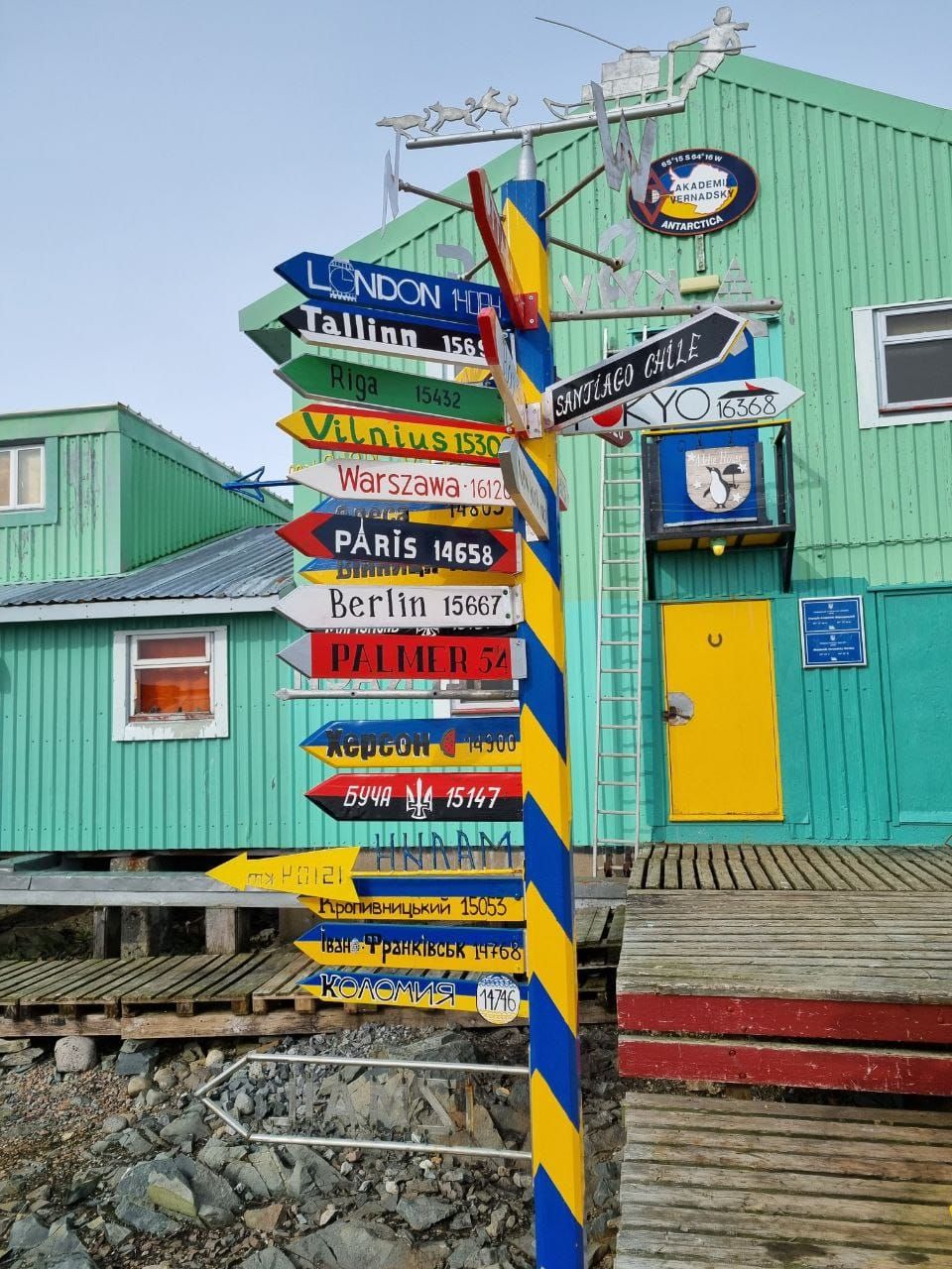 Полярники, работающие на украинской антарктической станции «Академик Вернадский», обновили указатель с названиями городов и добавили на него Мариуполь, Бучу, Херсон и столицы стран, поддерживающих Украину.