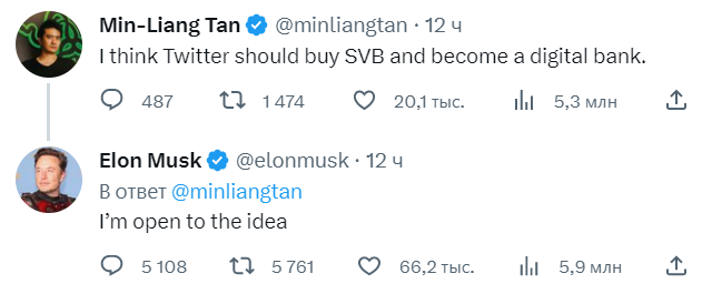 UPD: Как говорится, «наш пострел везде поспел»: Илон Маск пишет, что открыт к идее покупки Silicon Valley Bank.