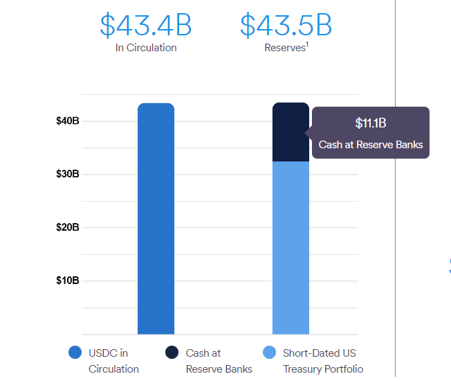 Circle: На 9 марта на сайте компании показано, что депозиты в американских банках составляют примерно 25% от всех резервов по USDC
