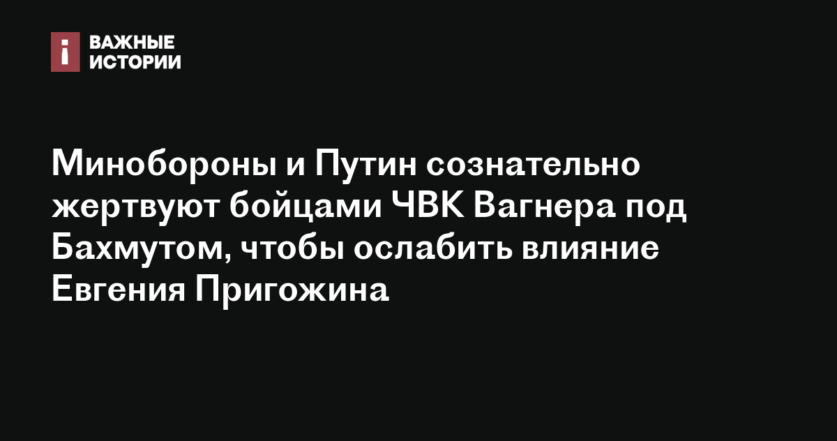 Минобороны и Путин сознательно жертвуют бойцами ЧВК Вагнера под Бахмутом, чтобы ослабить влияние Евгения Пригожина