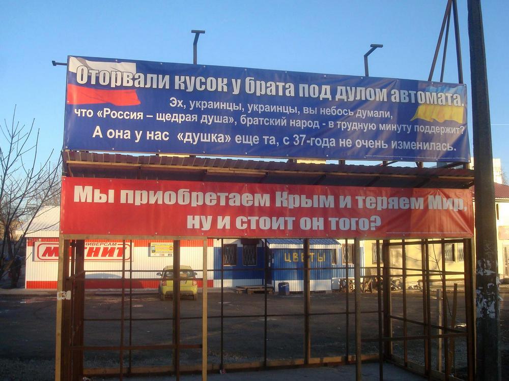 Надписи Скурихин начал размещать на своем магазине в 2014 году. На первой фотографии в фейсбуке Дмитрия — два плаката с лозунгами про оккупацию Крыма. В 2017 году на стене магазина появились надписи «Мир Украине» и «Свободу России», которые сохранились до 2023-го.