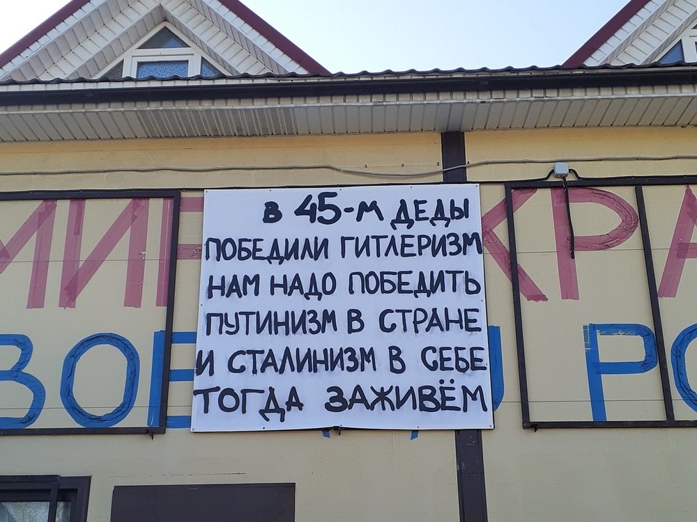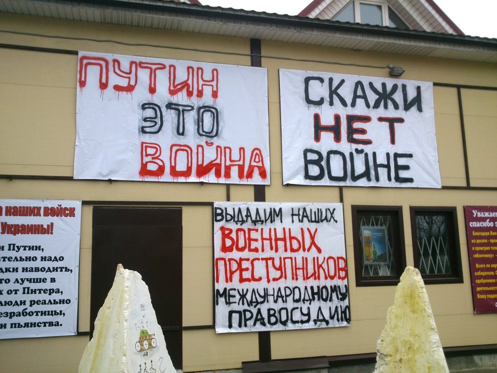 Следующие девять месяцев он оставлял на магазине антивоенные надписи и высказывался в соцсетях, пока его не арестовали.