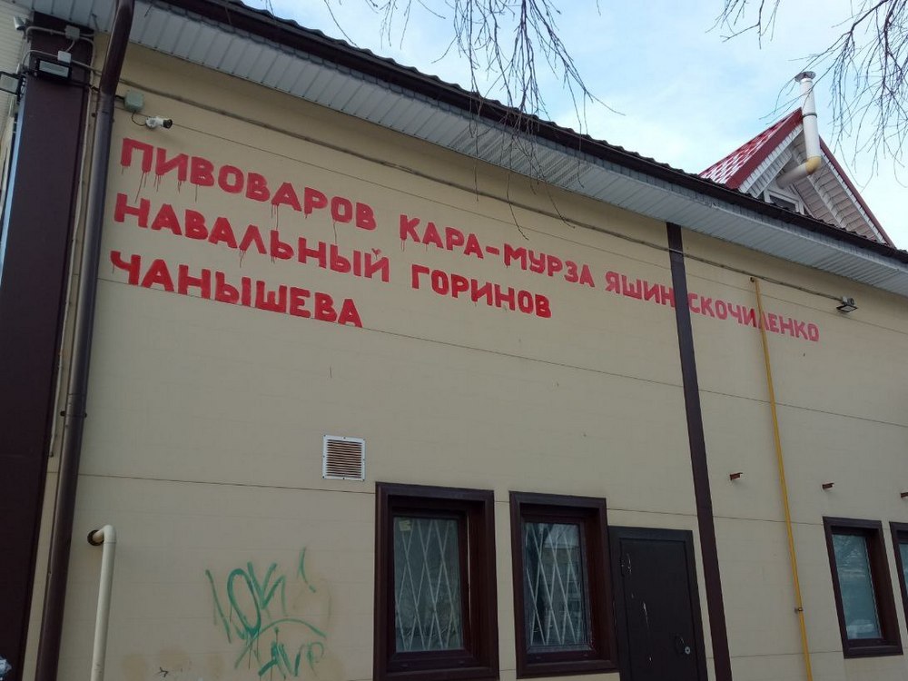 Потом на здании появились надписи об убийстве политика Бориса Немцова, с призывами освободить политзаключенных и с критикой Владимира Путина.