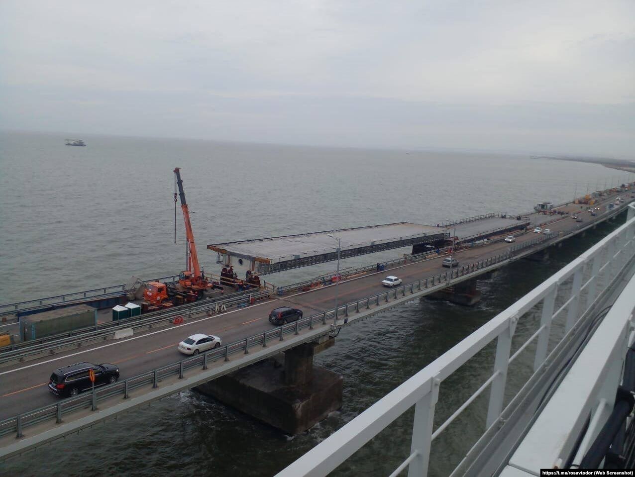 Российские чиновники заявляют о «применении уникальных технологий» во время ремонта автомобильной части Керченского моста. По данным Росавтодора, поврежденные мостовые пролеты разрезали и вывозили на баржах по морю, а вместо них поперечной надвижкой установили металлоконструкции, укрепив опоры.