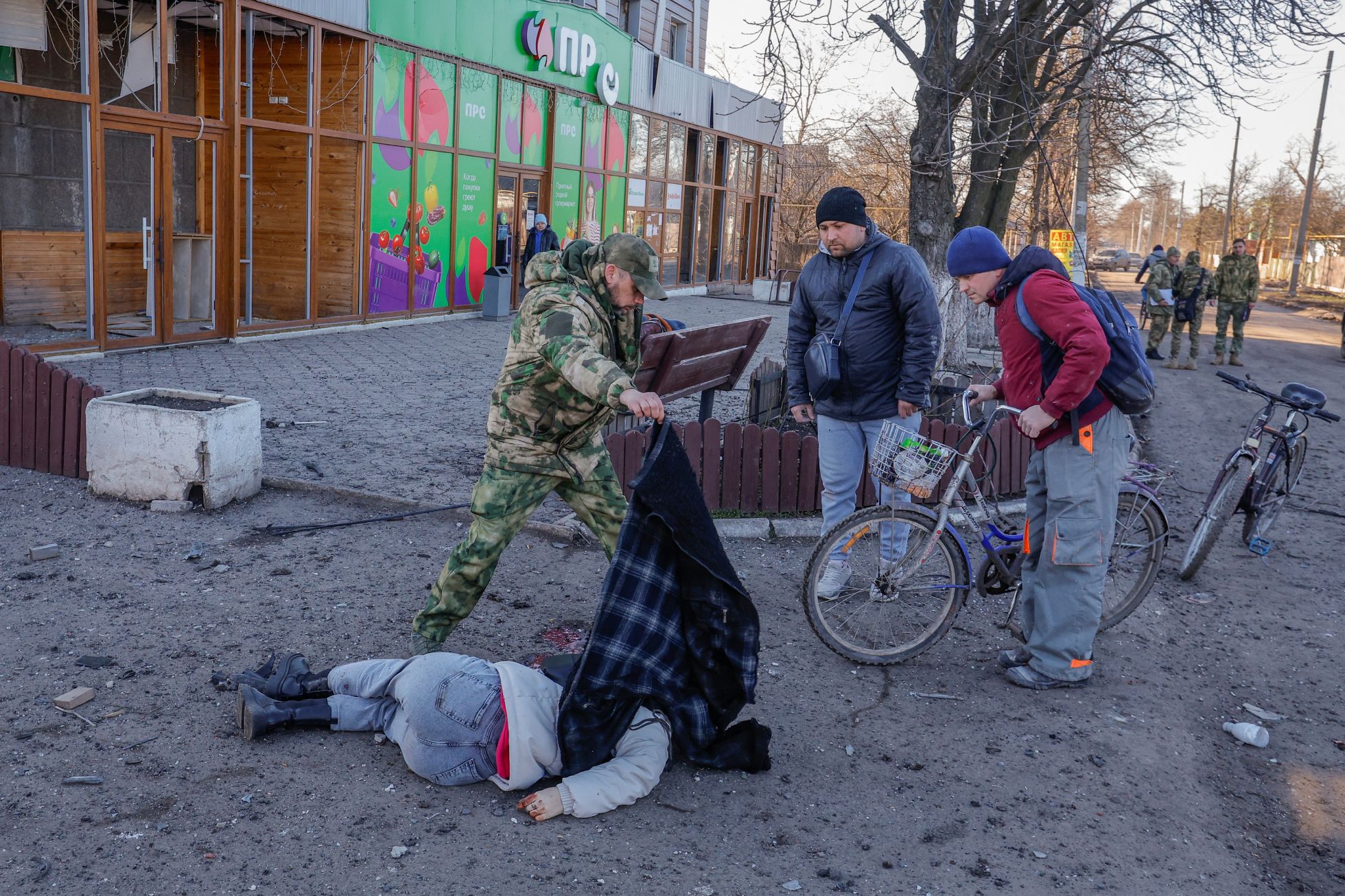 Каждый день с начала российского вторжения в Украину редакторы «Медузы» выбирают главные кадры, сделанные в течение предыдущего дня войны. Эти снимки содержат сцены жестокости, насилия и смерти, однако большинство из них не помещены под специальную плашку, которой обычно редакция скрывает подобные изображения. В серии этих материалов мы стараемся задокументировать войну такой, какая она есть.