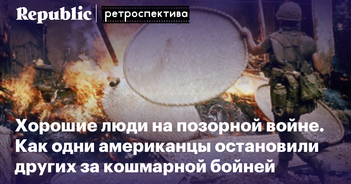 Стоит сделать ход конём и посмотреть, как эта логика выглядит со стороны. И не просто со стороны, а на примере записанных в заклятые враги Соединённых Штатов. На этой неделе исполняется 55 лет крупнейшему военному преступлению в американской истории — резне в Сонгми во время Вьетнамской войны. 16 марта 1968 года солдаты США в азиатской стране убили около 500 гражданских жителей. Причём в самой Америке правду о случившемся только спустя полтора года узнали благодаря одному отчаянному дембелю.