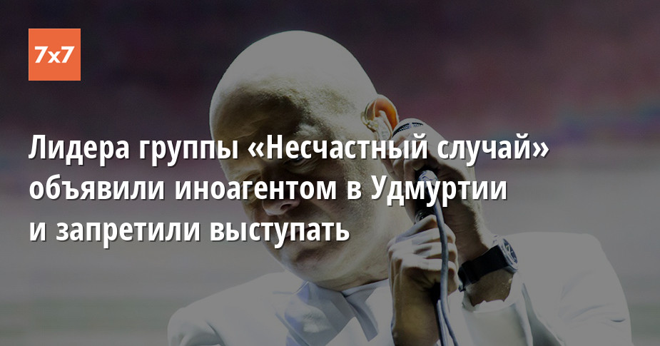 В Удмуртии отменили выступления группы «Несчастный случай». Организатору мероприятия в музее, где должен был пройти концерт, сообщили, что солист Алексей Кортнев — иноагент. Однако у музыканта нет этого статуса. Об этом «7х7» 14 марта рассказал сооснователь проекта «Учучуду Music Weekend» Александр Каренин-Смакотин.