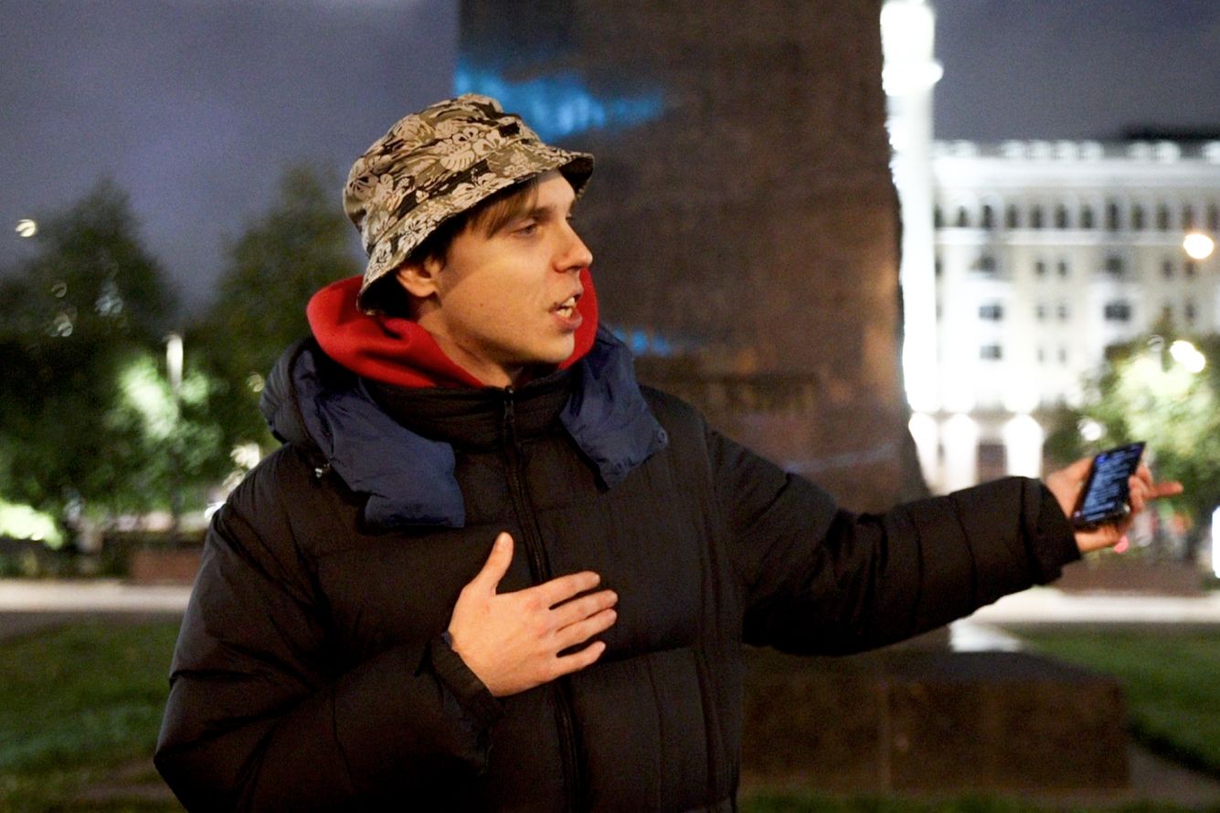 Snusmumriken / SOTA Артем Камардин на Триумфальной площади в Москве, где 25 сентября 2022 года прошли «Маяковские чтения»