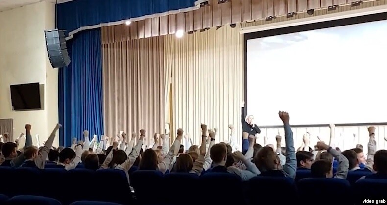 Школьников в Казани призвали поднять руку "в небо, в НАТО" под песню "Я русский"