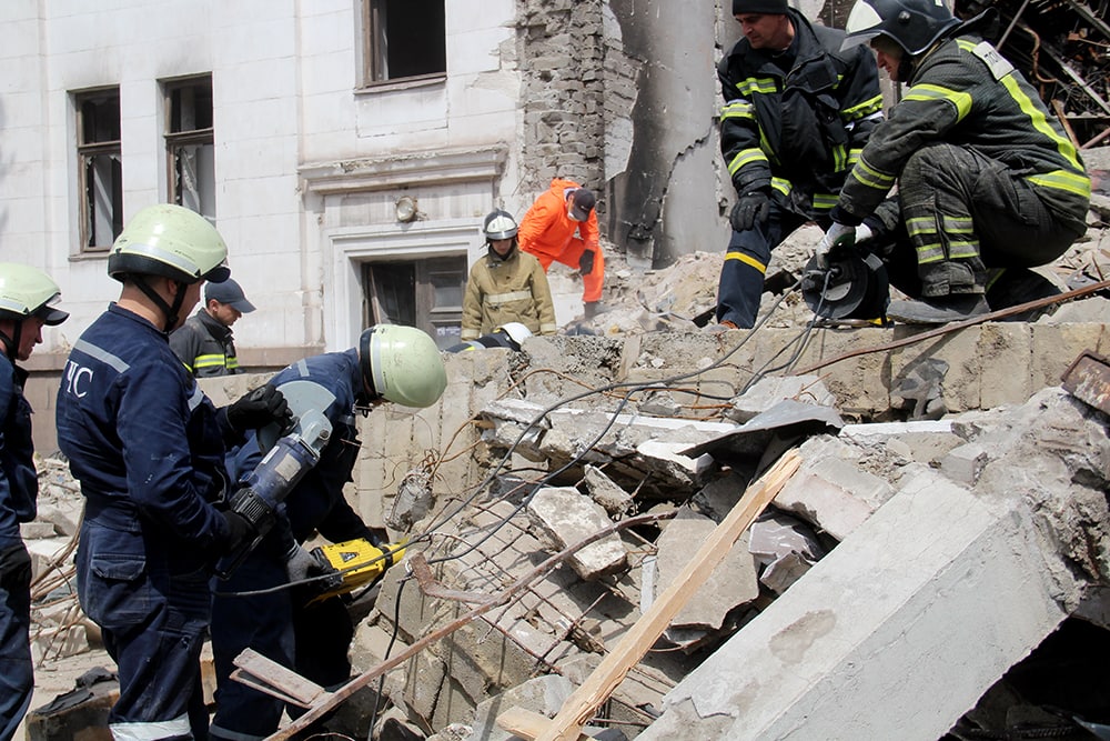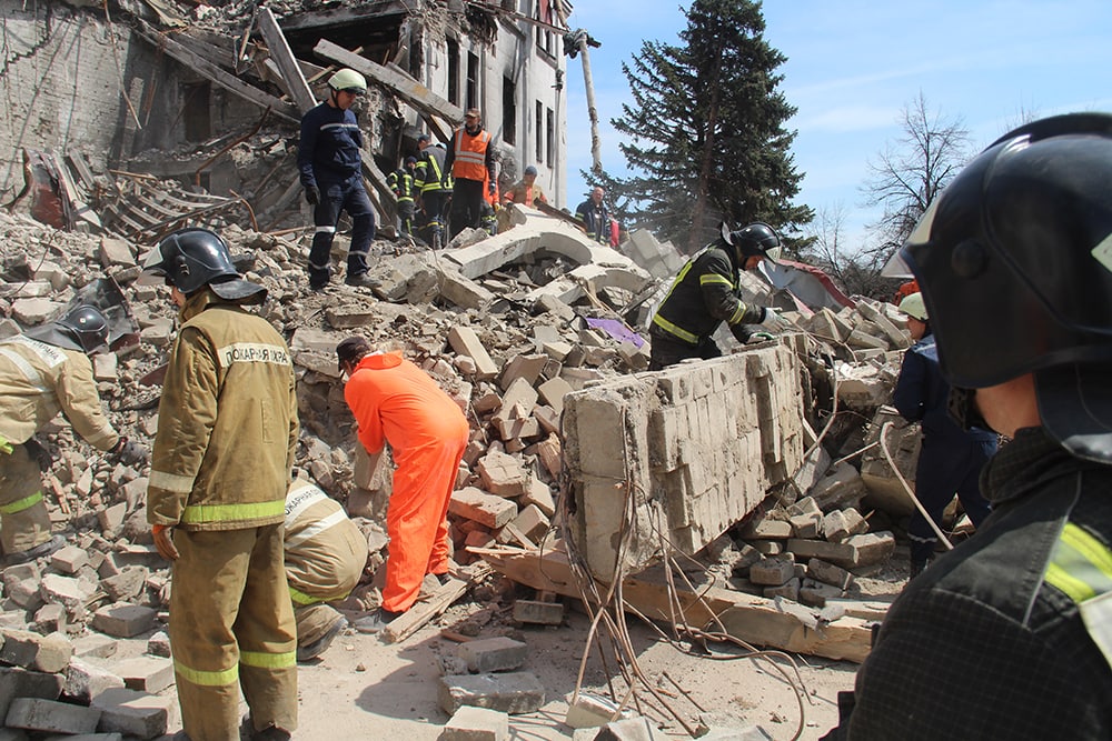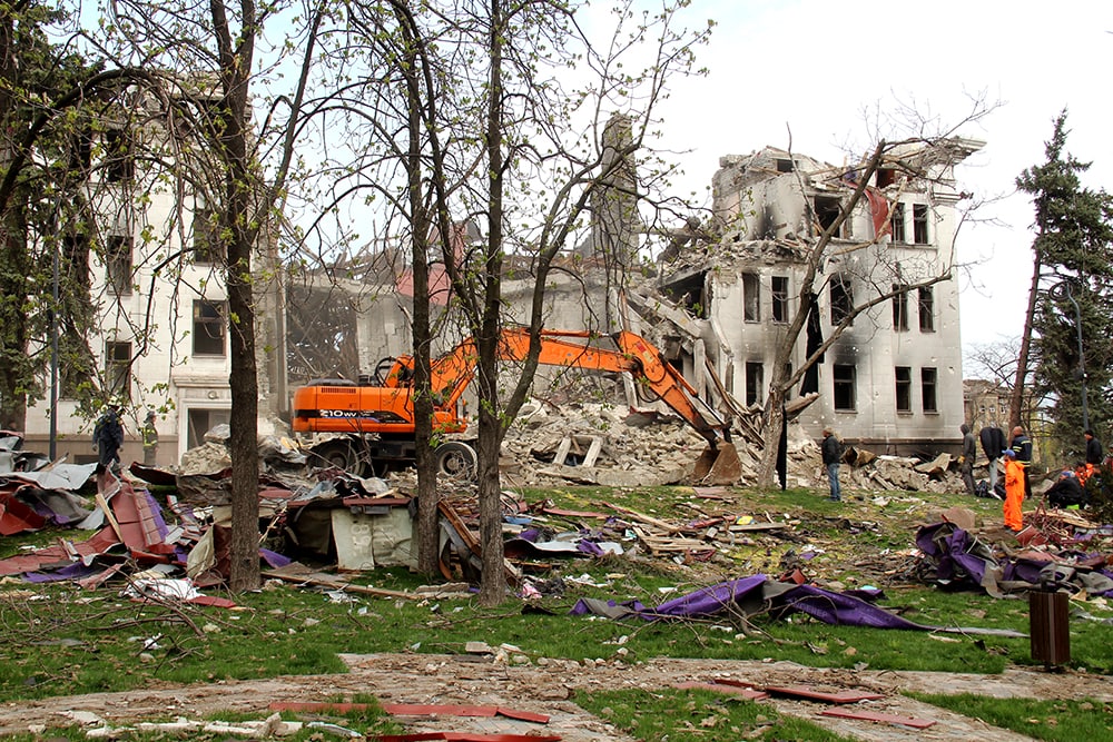 Фото обложки: драмтеатр в Мариуполе, 16 марта 2022 года. Фото: Донецька обласна військова адміністрація (CC BY SA 4.0).