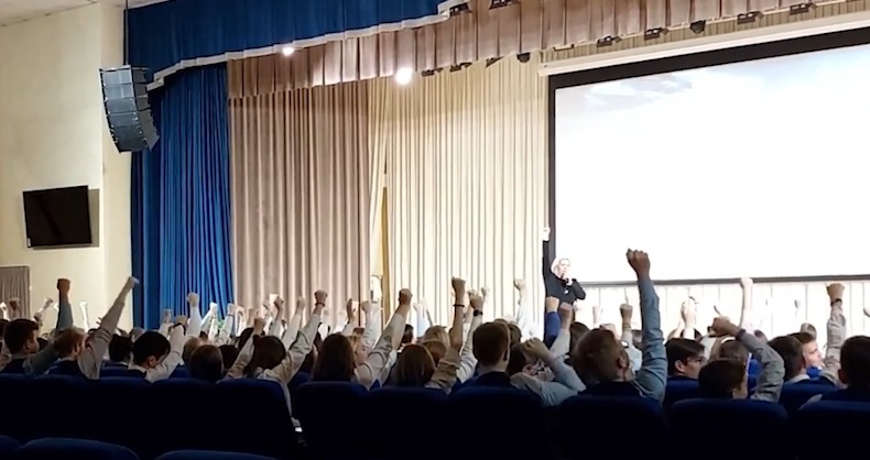 На уходящей неделе в сети распространилось видео, на котором школьникам включили песню "Я русский", призывая при этом поднять руку "в небо", "в НАТО". Татаро-башкирская служба "Радио Свободная Европа" узнала, в какой школе прошло мероприятие, посвященное 23 февраля. Это "Многопрофильный лицей №186 — "Перспектива" в Приволжском районе города Казани. На видео есть учащиеся, которые отказываются поднять руку. Управление образования Казани уже оправдалось. По мнению чиновников, "возникло недопонимание". В управлении образования уточнили, что в эти дни школы готовились к фестивалю "Большая перемена" — "почти как "Студенческая весна", только для школьников". Чиновники отметили, что "в видео попали и высказывания педагога во время репетиции, где она призывала ребят быть активнее".