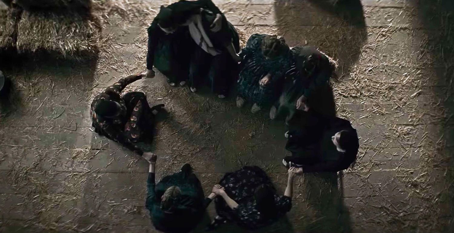 Неброская красота статичных кадров-картин, наполненных каким-то вермееровским светом (женщины в чопорных одеждах напоминают о старой голландской живописи), создана оператором Люком Монпелье, прежде работавшим с Гаем Мэддином. Но, при замкнутости действия в одном пространстве и строгом соблюдении правила трех единств, Сара Полли обеспечивает внутреннюю динамику драматургией отношений между женщинами разных поколений. Отчасти она передана в диалоге, отчасти — сложной игрой взглядов, жестов, движений: гневная Салом (звезда «Короны» Клэр Фой) и ее оппонентка, спокойная и ироничная Уна (неузнаваемая Руни Мара), саркастичная жертва деспотичного мужа Мариш (памятная по «Чернобылю» Джесси Бакли) и железная Янц по прозвищу «Лицо со шрамом» (Фрэнсис Макдорманд, она же сопродюсер картины).