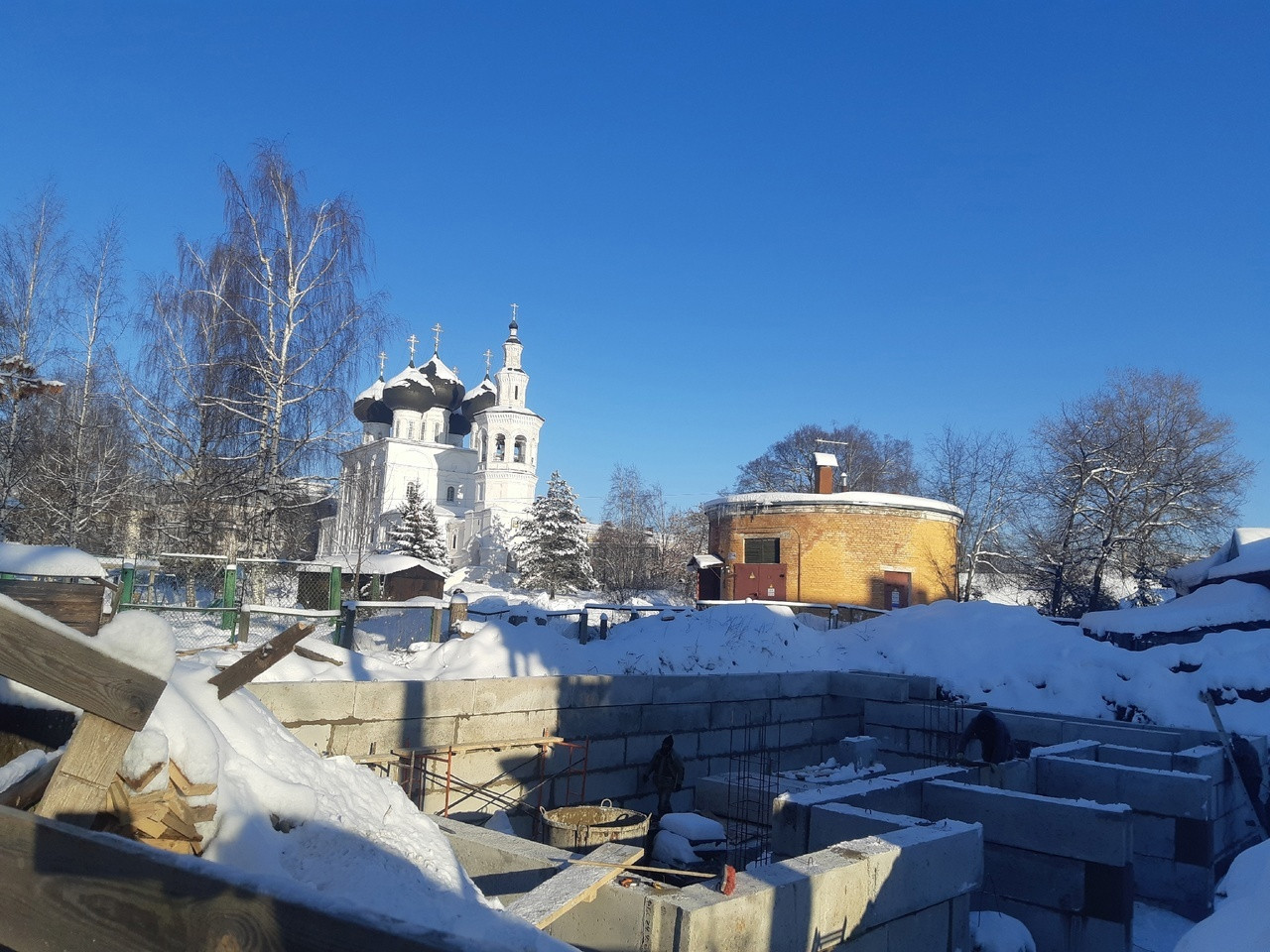 Строят на территории памятника архитектуры. А были ли археологические раскопки? А согласованы ли работы с Комитетом по охране объектов культурного наследия? А не испортит ли это строение исторические панорамы Вологды? И появится ли информационный щит?