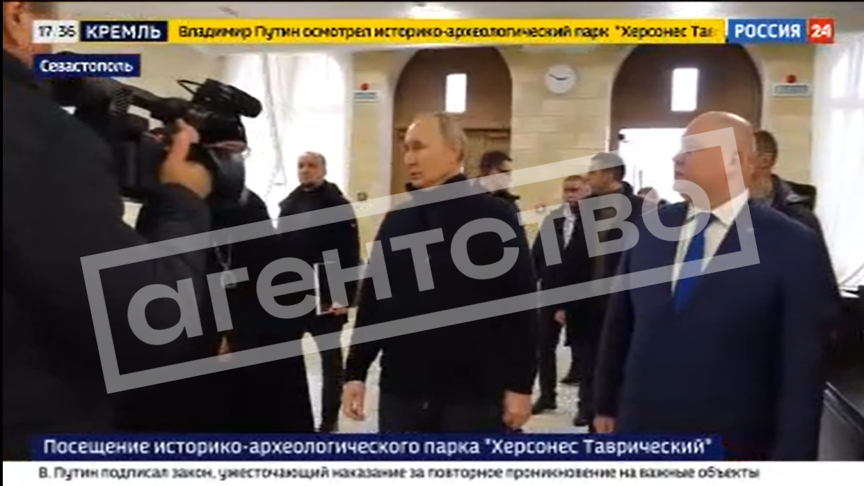 Детали. На видео посещения музея в «Херсонесе Таврическом» видны часы — они показывают примерно 14:50. Однако эти кадры зрители впервые увидели после 17:30 по московскому времени.