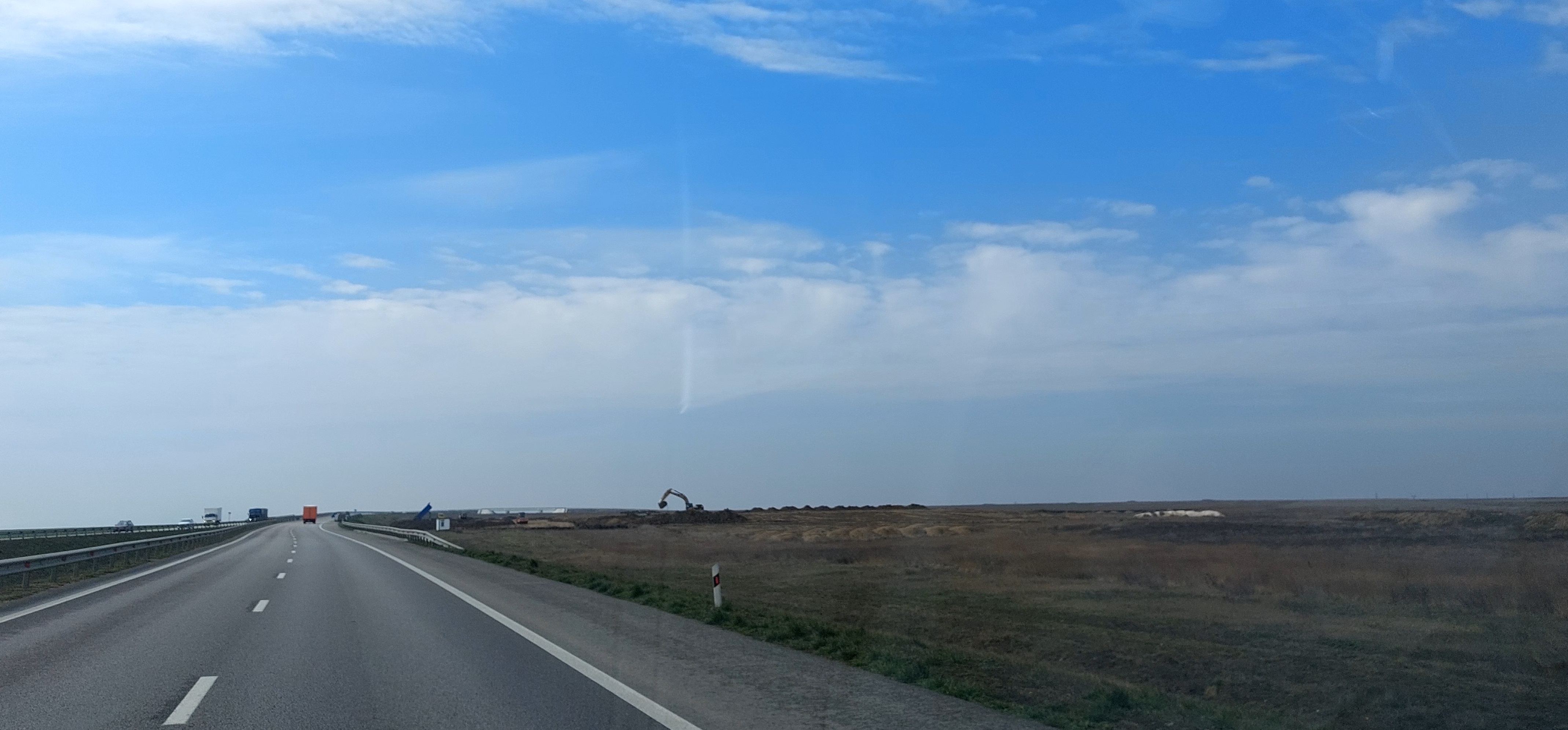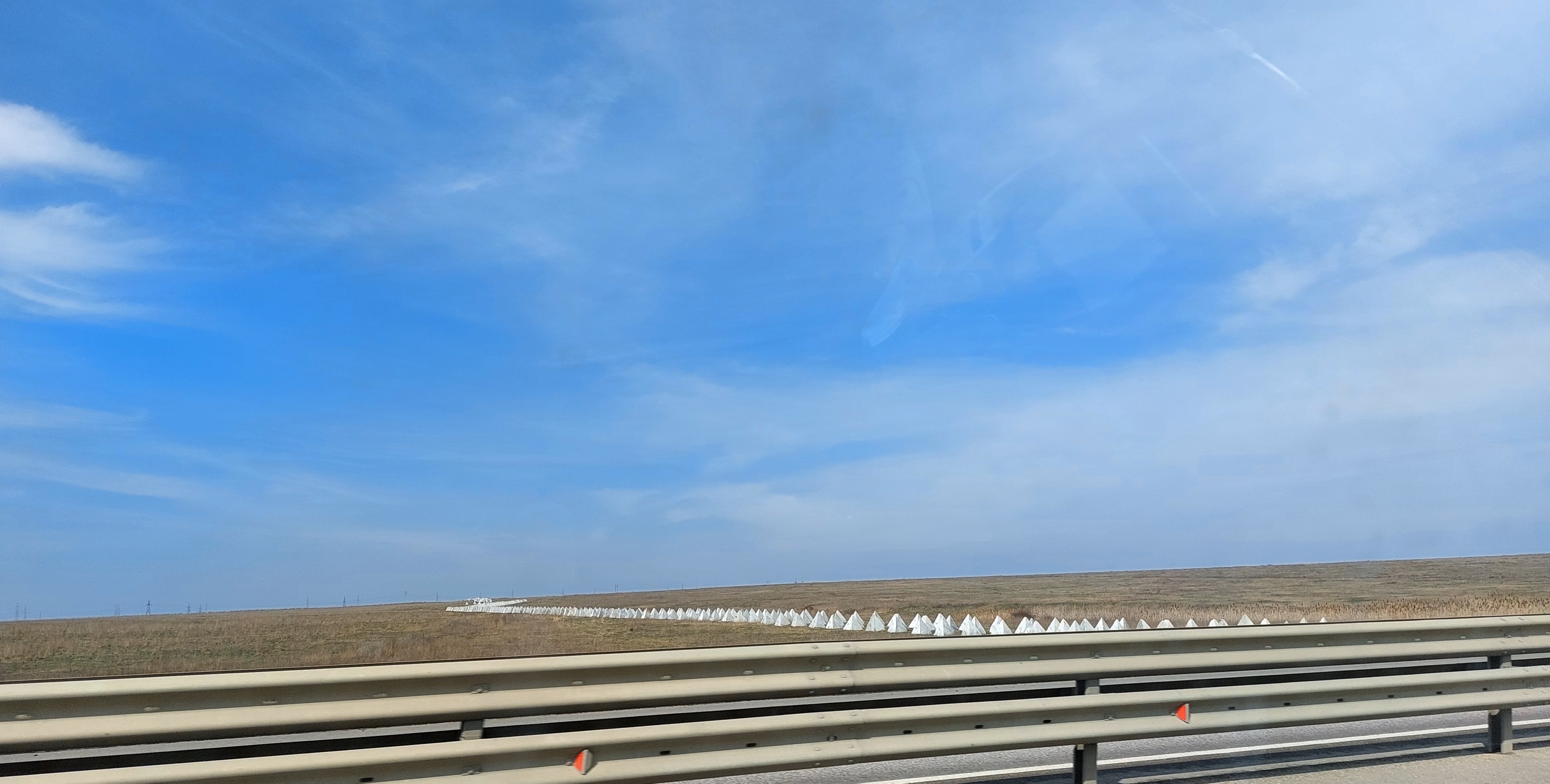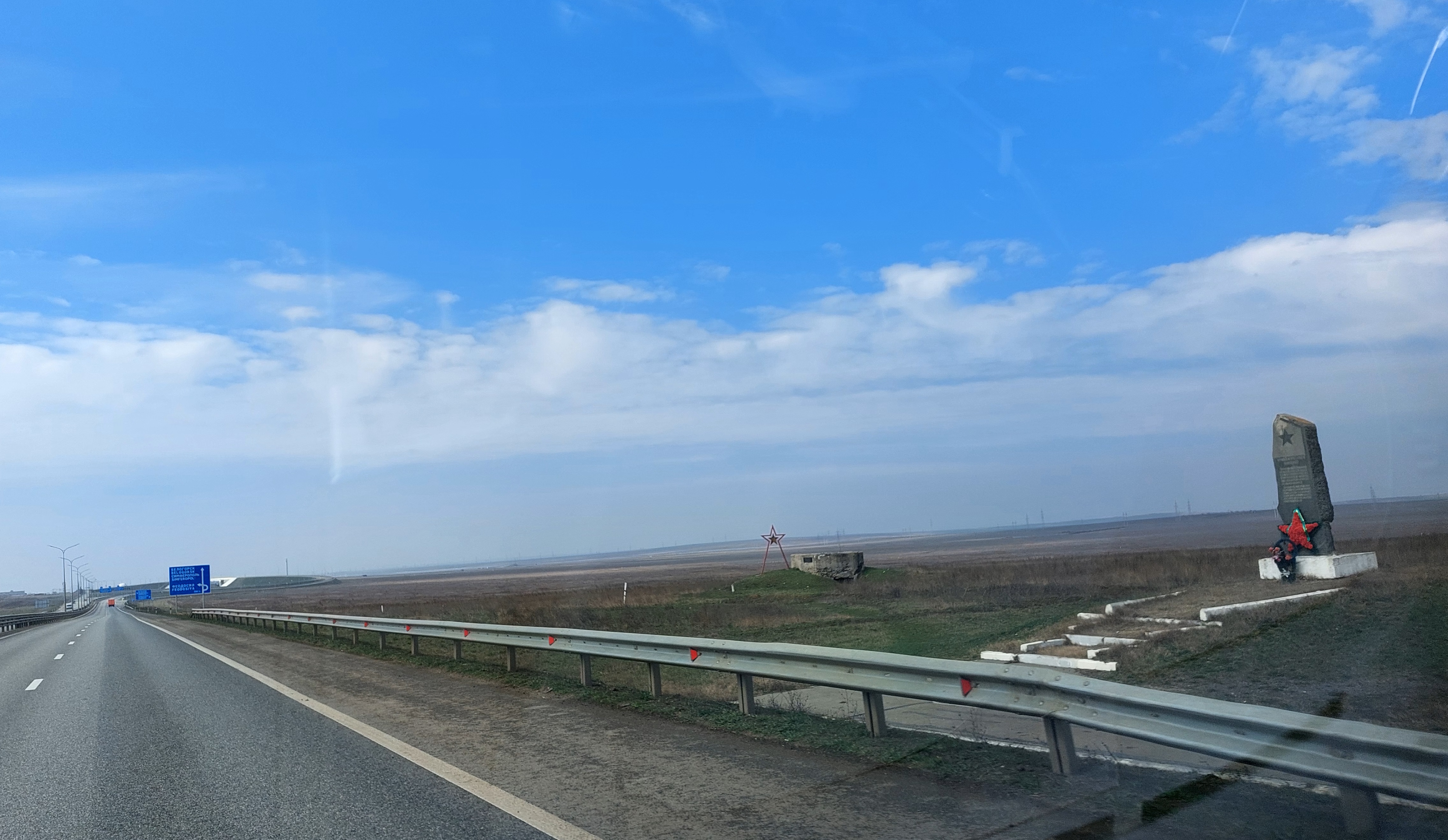 Это участок трассы между селами Батальное и Приморское. Оборонная линия извилиста и тянется до самого горизонта.