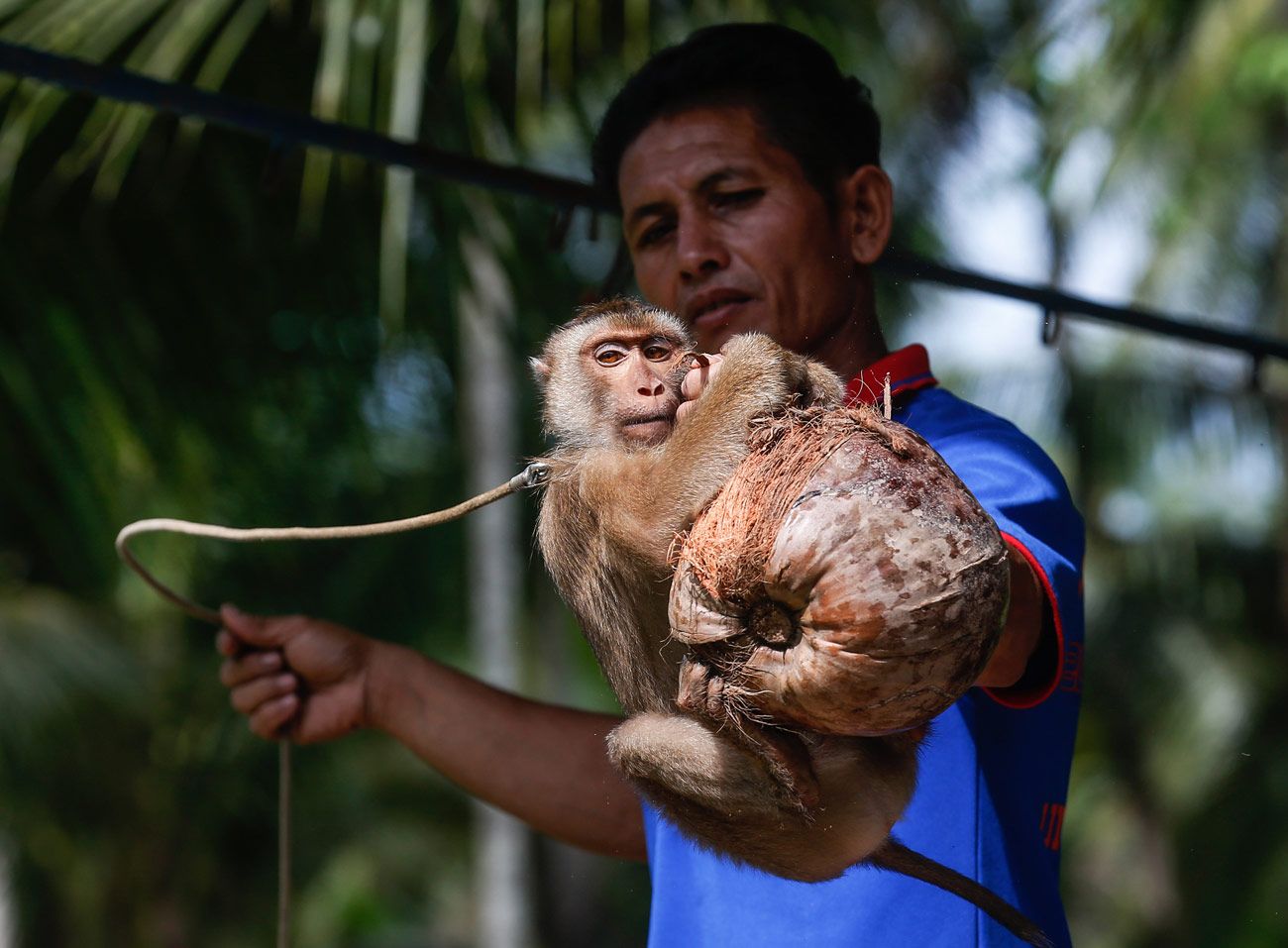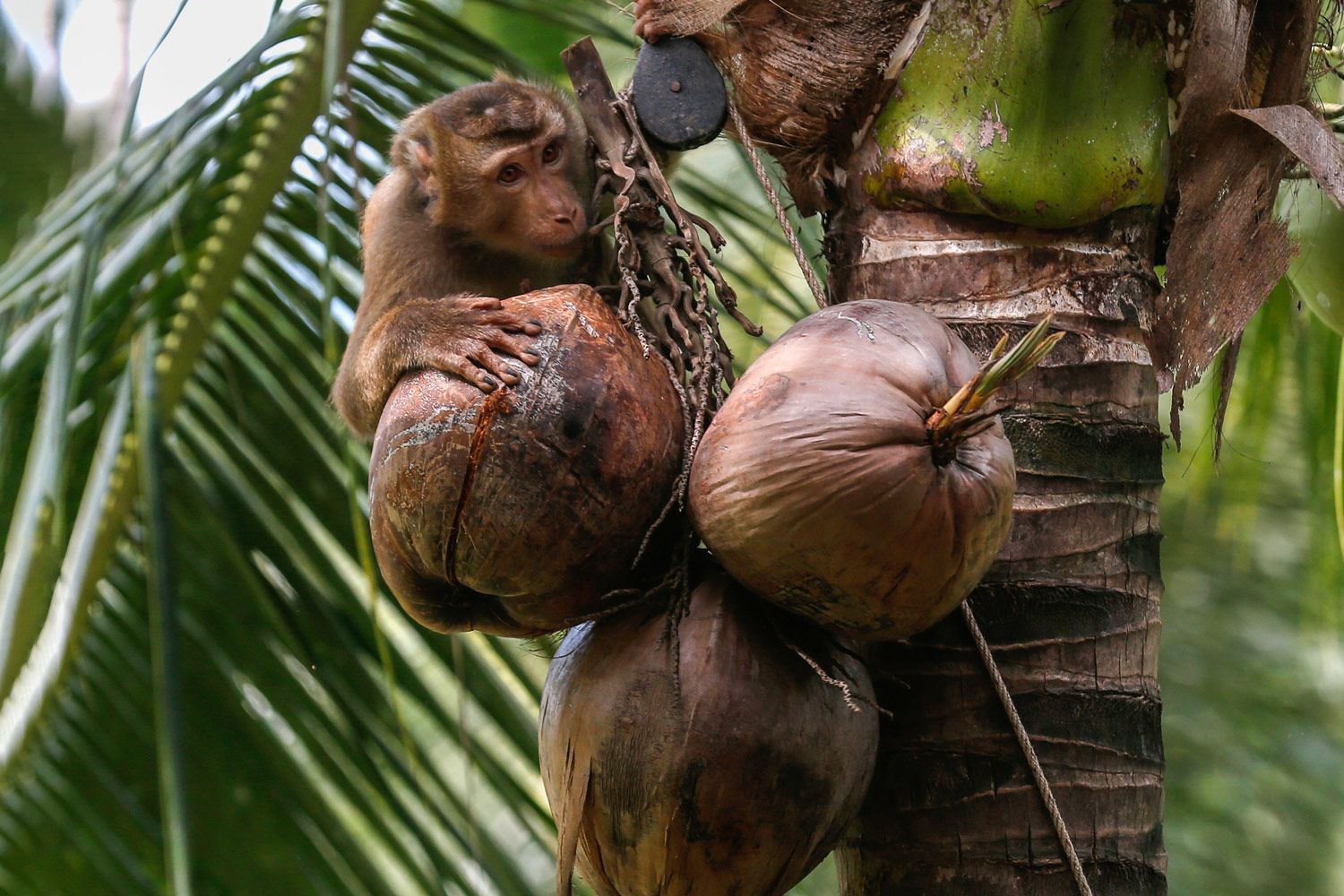 Защитники животных опубликовали фото и видео, на которых сняты обезьяны, прикованные железными цепями. Расследователи рассказали, что один из поставщиков держал обезьян на цепи на земле среди грязи и мусора. По словам работника фермы, обезьян заставляют собирать кокосы в течение 10 лет, прежде чем их «отправят на пенсию». В отчете также говорится, что во время тренировок их запугивают для подчинения. Защитники животных стали свидетелями того, как один из тренеров бьет обезьяну, дергает ее за шею, а затем бьет поводком.