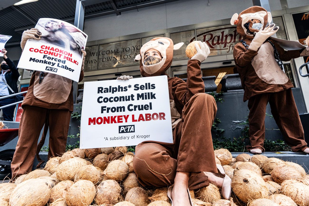 PETA начала расследование о возможной эксплуатации животных в декабре 2019 года. Защитники животных требуют от магазинов прекратить продажу кокосового молока, приготовленного из кокосовых орехов, для сбора которых используют обезьян.