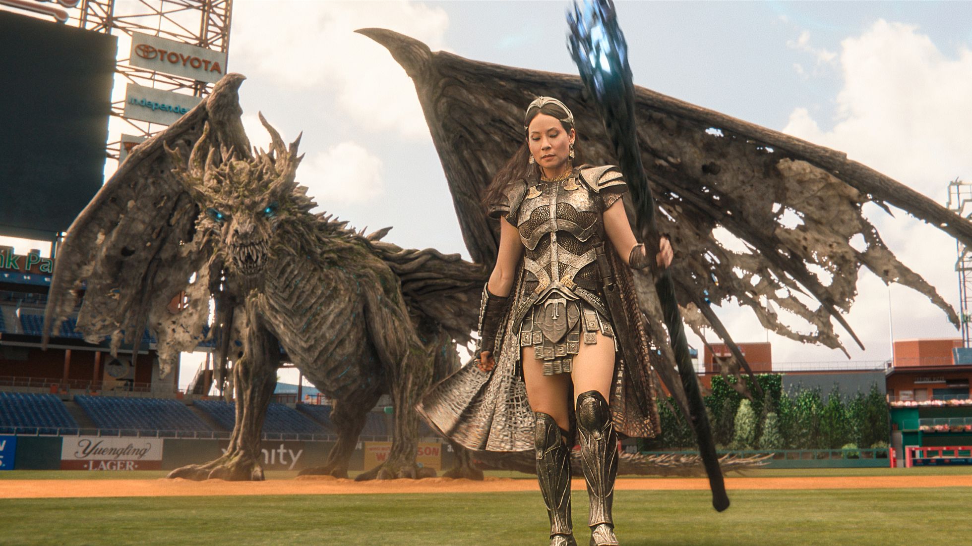 Античная мифология вполне органично вплетена во вселенную «Шазама!», заменяя столь же поверхностную игру в фэнтези из предыдущей части — недаром не слишком начитанный Билли путает ветхозаветного Соломона с толкиновским Саруманом. Древо Жизни пускает корни в благополучном американском мегаполисе. Набухают почки, из которых лезет древнегреческая нечисть: гарпии, циклопы, минотавры. Конец близок.