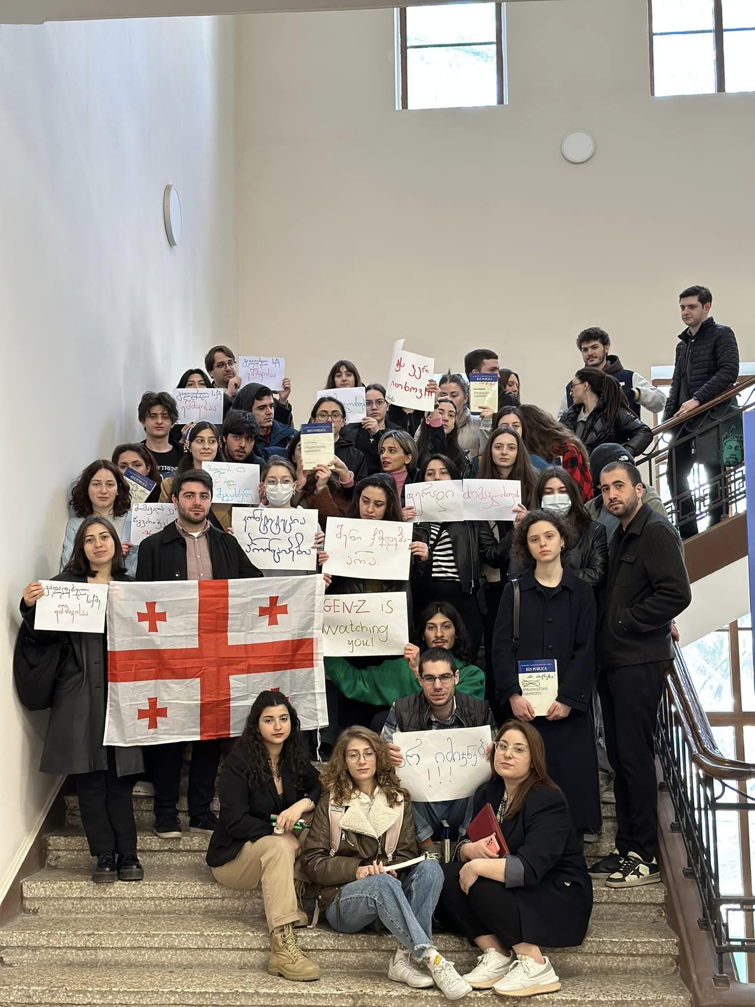 2 марта учащиеся Тбилисского государственного университета (ТГУ) создали в фейсбуке группу «Студенты против российского закона». В тот же день в группе сообщили, что учащиеся факультета международных отношений отказываются проходить курс лекций Николоза Самхарадзе, который также работает председателем комитета по международным отношениям Грузии. Ранее политик возглавлял заседание комитетов, участники которых поддержали законопроект об «иноагентах».