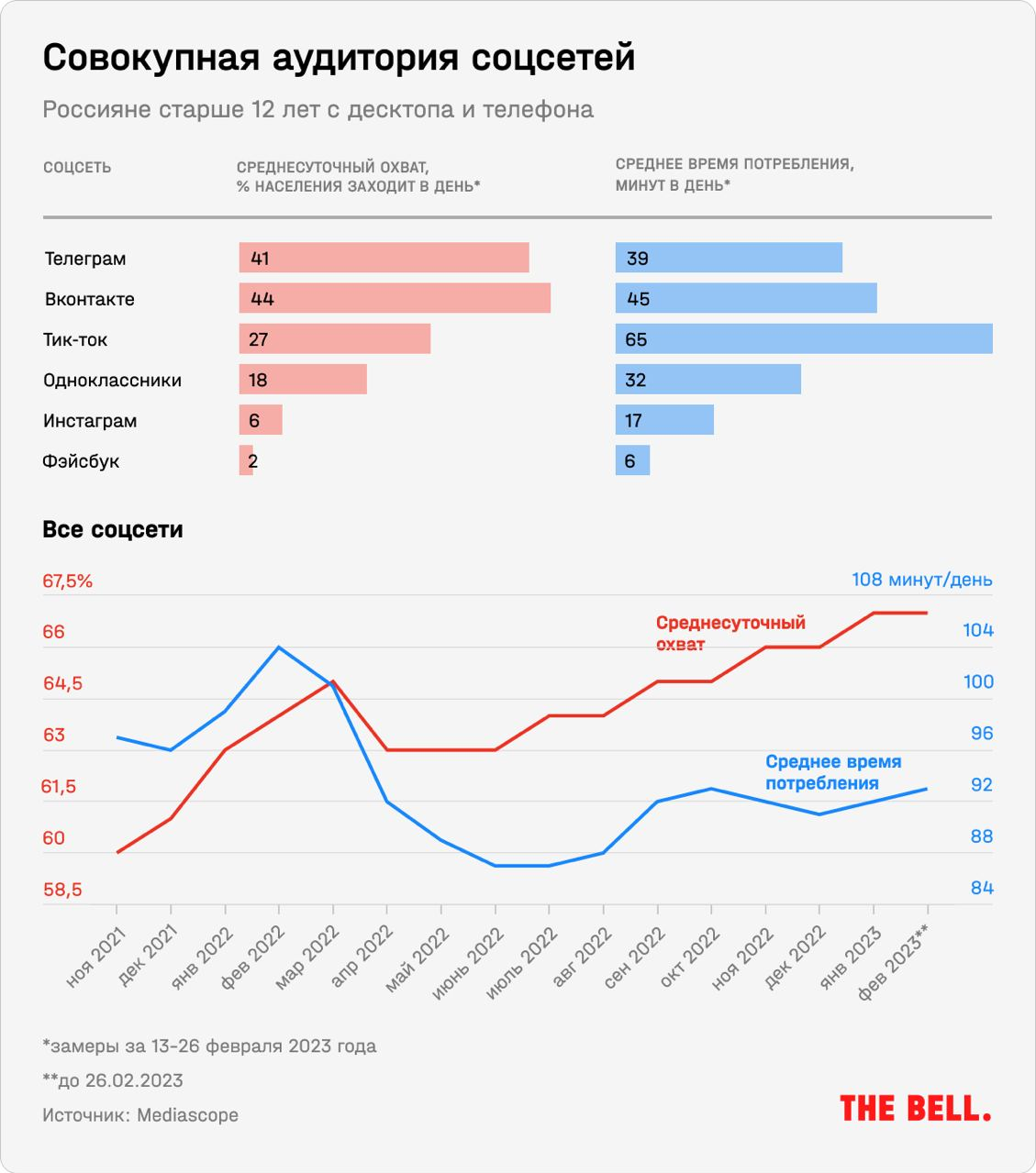 - Война за Telegram может вестись не только за влияние, но и за деньги. Соцсеть в России стремительно растет — особенно после блокировки Facebook и Instagram (обе платформы принадлежат компании Meta, российские власти в 2022 году объявили ее «экстремистской»). К началу января 2023 года ежесуточная аудитория мессенджера в России составила 48,4 млн пользователей.