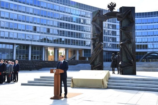 Директор СВР Сергей Нарышкин во дворе главного здания Службы внешней разведки
