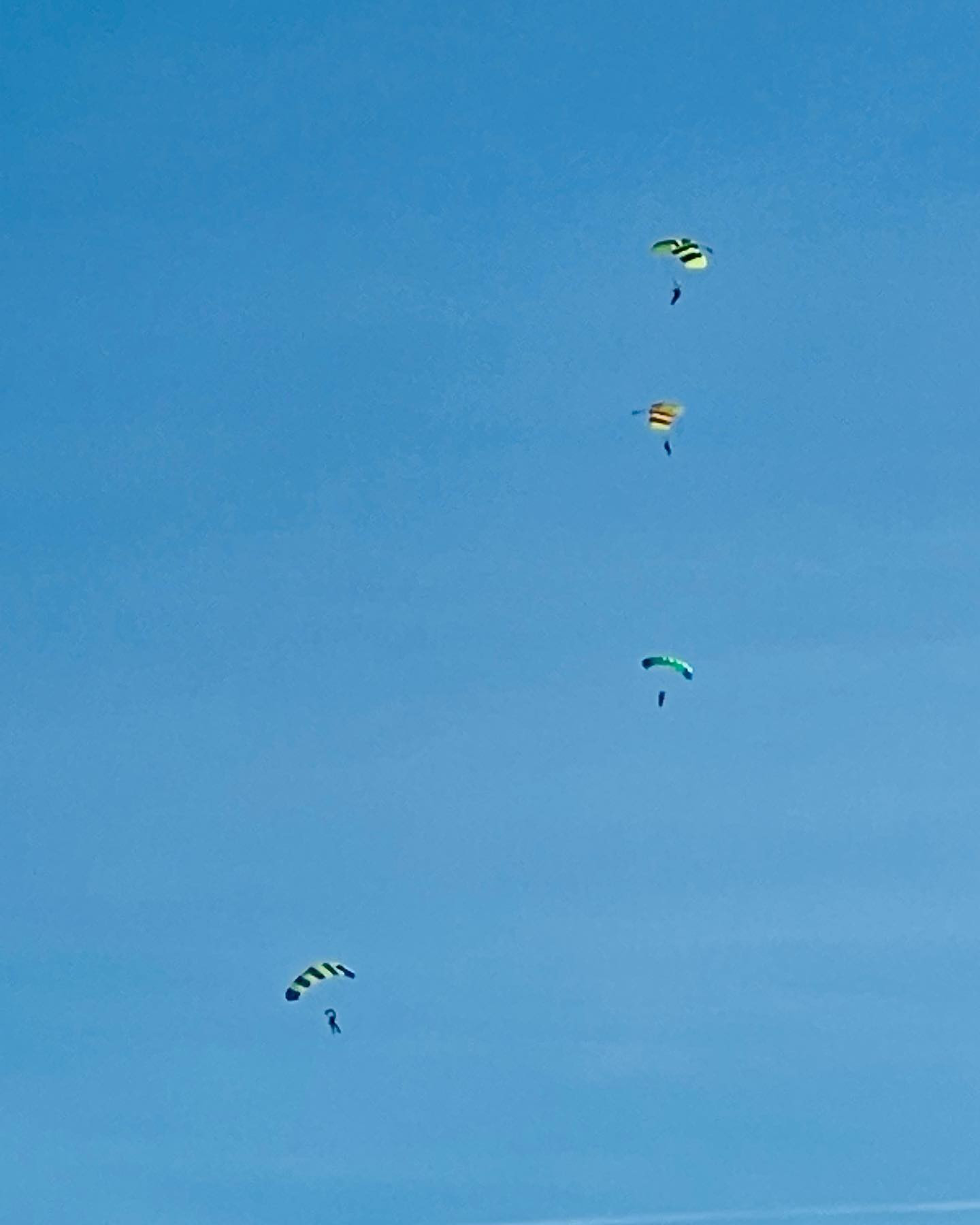 А еще бонусом: если подняться туда в выходные, то можно наблюдать за прыжками парашютистов над Порошинским аэродромом. Считать сколько выпрыгнуло из самолета и сколько раскрылось куполов. Довольно медитативное занятие оказывается)